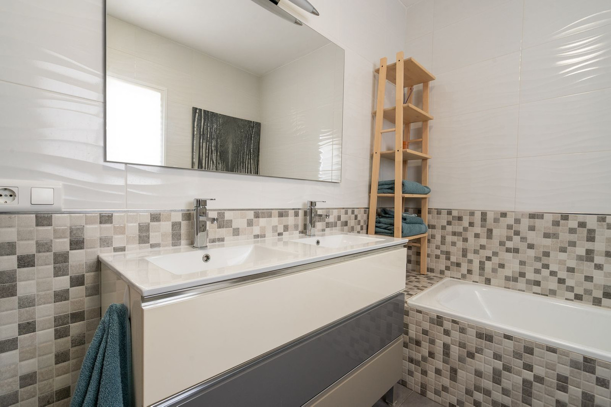 Extra kenmerken zijn airconditioning in de gehele woning, een grote privé garage en toegang tot een gemeenschappelijk zwembad. De woning wordt volledig gemeubileerd verkocht en is direct instapklaar of geschikt voor verhuur.