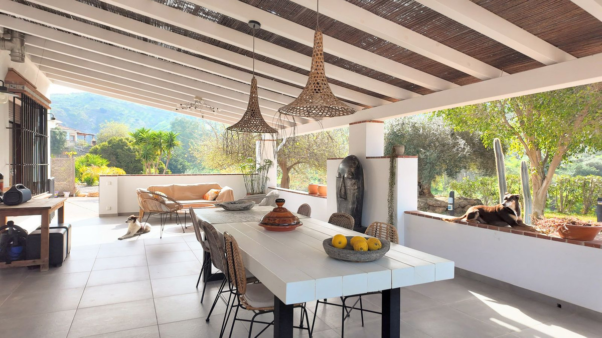 Op het enorme perceel van 10.000 m² geniet je van volledige privacy en rust. De tuin is een paradijs vol mediterrane bomen en planten; je oogst hier je eigen avocado’s, sinaasappels, citroenen en mandarijnen — en dat zijn slechts enkele van de vele soorten die deze tuin zo groen en geurig maken. Zodra de zon ondergaat, wordt het verlichte Castillo de Álora de ster van de avond, een prachtig decor voor een drankje op het terras.