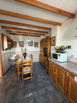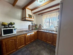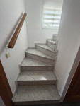 On the first floor, there is a large terrace, a small toilet at the entrance, a spacious, fully equipped kitchen, and the living room with access to the garage.