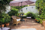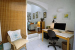 Location Bahía de Casares, one of the most coveted locations along Casares Costa. Designed by the renowned Aubrey David, this exclusive complex features low-rise Andalusian-style residences nestled among expansive, tranquil gardens, with a large communal pool at its heart. The beach at Torre de la Sal is just a leisurely stroll away, while the charming village of Sabinillas and the vibrant La Duquesa Marina are only five minutes by car. Estepona town centre is a ten-minute drive, offering shops, dining, and culture. Golf enthusiasts will enjoy easy access to top courses, including Doña Julia and the prestigious Finca Cortesín. The property benefits from excellent access to the main road, providing a straightforward commute to Marbella, as well as Gibraltar and Málaga airports, located around 30 minutes and one hour away respectively. Internal Layout Upon entering you notice that this property oozes the Mediterranean rustic charm and lifestyle. The ground floor is quite simply one room that opens to 3 or four with character inglenooks and crannies and sloping ceilings, that allows plenty of natural light and air. The living room has a high ceiling and dominated by a super copper chimney fireplace with a log burner. There is room to accommodate ample seating areas and a formal dining area. Here there are large patio doors that lead out to the garden terrace. The fitted kitchen is open plan with a breakfast bar area. The living room leads down to a snug area – ideal for an office area. This area opens out to the second garden terrace and lower garden. The ground floor is complemented with a downstairs guest cloakroom. A feature staircase leads to the upper level and landing with large storage cupboards. The Bedroom is a spacious double with plenty of character features. Here there is access to the en suite bathroom and third terrace. The property has had some updates over the years and in good condition, but some new updates would certainly enhance this character property. Outdoor Layout The villa benefits from an exceptional amount of outdoor space, perfectly embracing the essence of Mediterranean living. A choice of sunny terraces, a charming courtyard-style enclosed garden terrace, and a private garden area provide versatile spaces for both relaxation and entertaining. Each area is positioned to offer a choice of sun or shade throughout the day. The courtyard terrace, accessed directly from the living room, offers a private and intimate setting — ideal for al fresco dining or unwinding in a tranquil atmosphere. A second terrace, also accessed from the living room, enjoys an easterly orientation, capturing lovely sea views and the morning sunshine. This terrace flows seamlessly down to the private garden area, enhancing the indoor-outdoor lifestyle. The third terrace is accessed from the upstairs bedroom and is perfectly positioned to take full advantage of the super sea views. translate to spanish