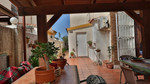 * Covered porch with a wooden structure, ideal for gatherings or family meals.
