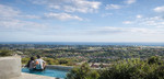Spectaculaire heuvelwoning met panoramisch uitzicht op de Middellandse Zee, ontworpen met strakke architectonische lijnen en uitgebreid gebruik van natuursteen.