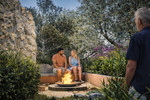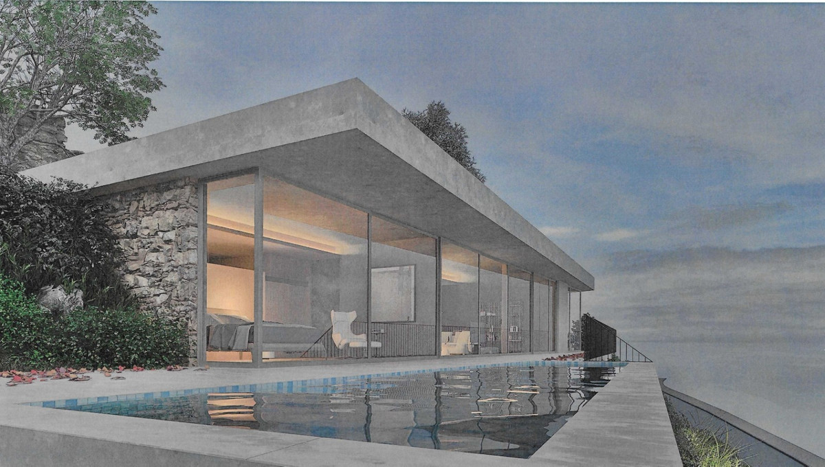 De woning beschikt over een lang, laag betonnen volume dat boven het terrein is verheven, royale vloer-tot-plafond beglazing, een infinity zwembad uitgelijnd met de zeehorizon, meerdere buitenterrassen en een zorgvuldig aangelegde mediterrane tuin met olijfbomen, cipressen, lavendelvelden en aromatische planten.