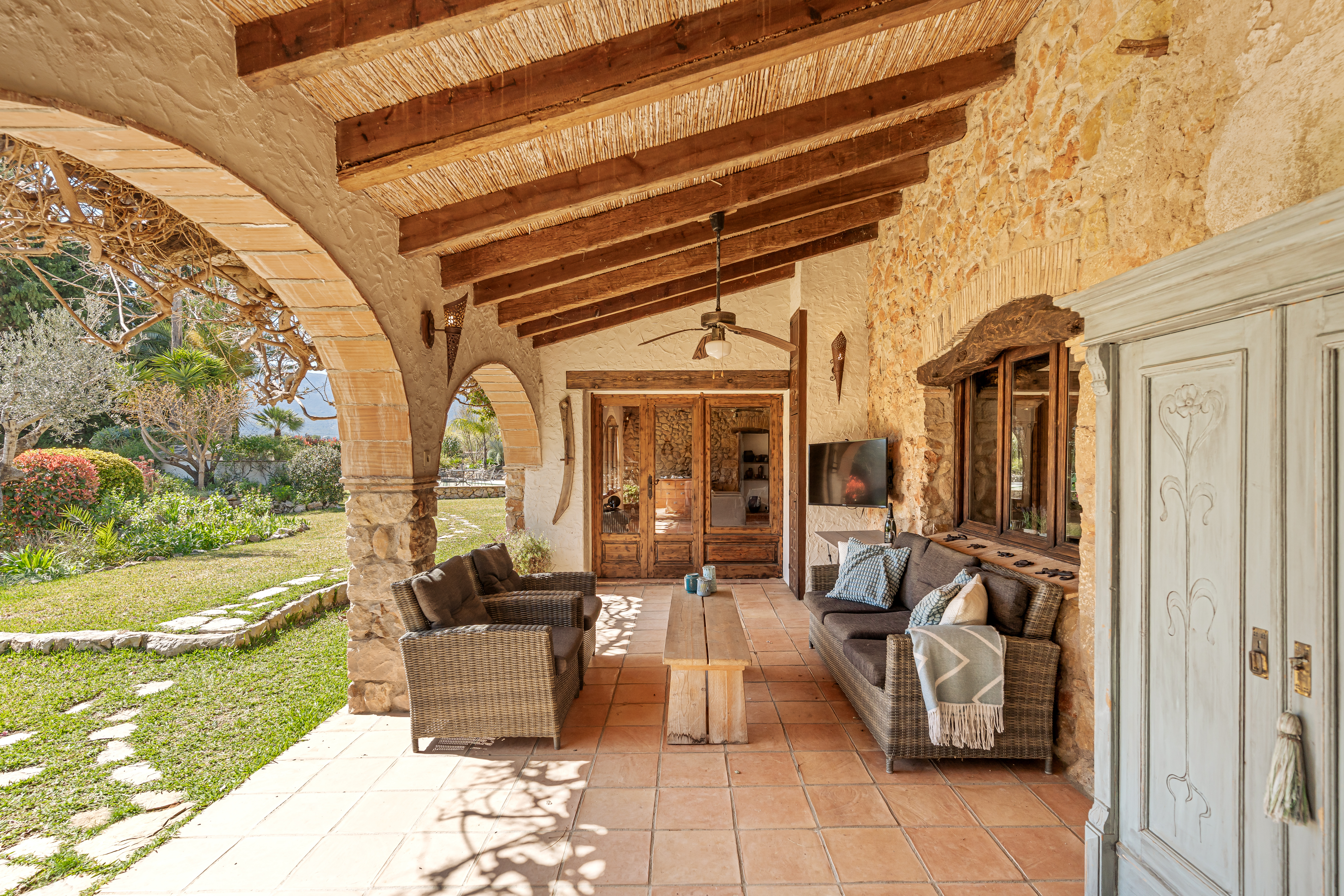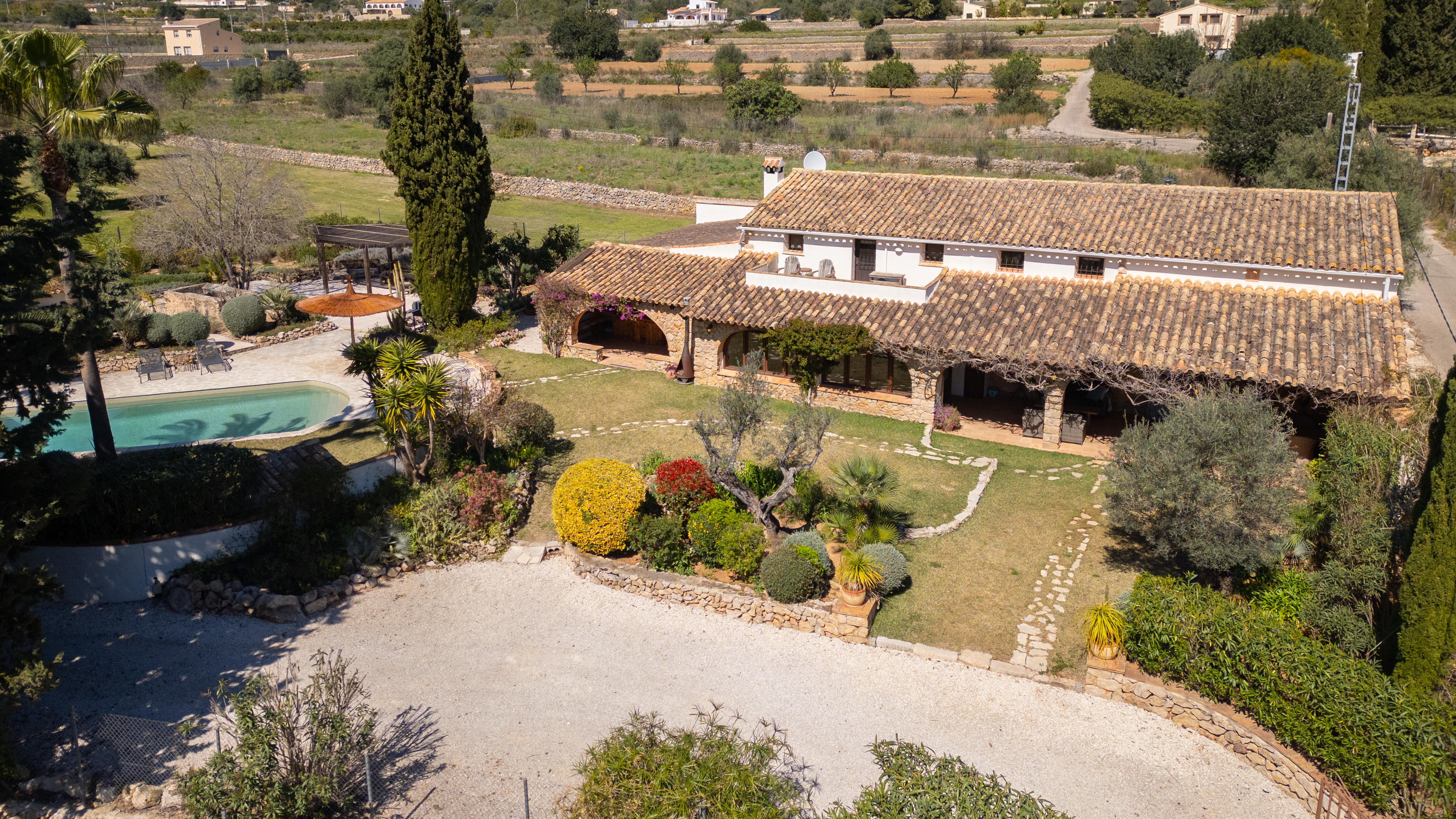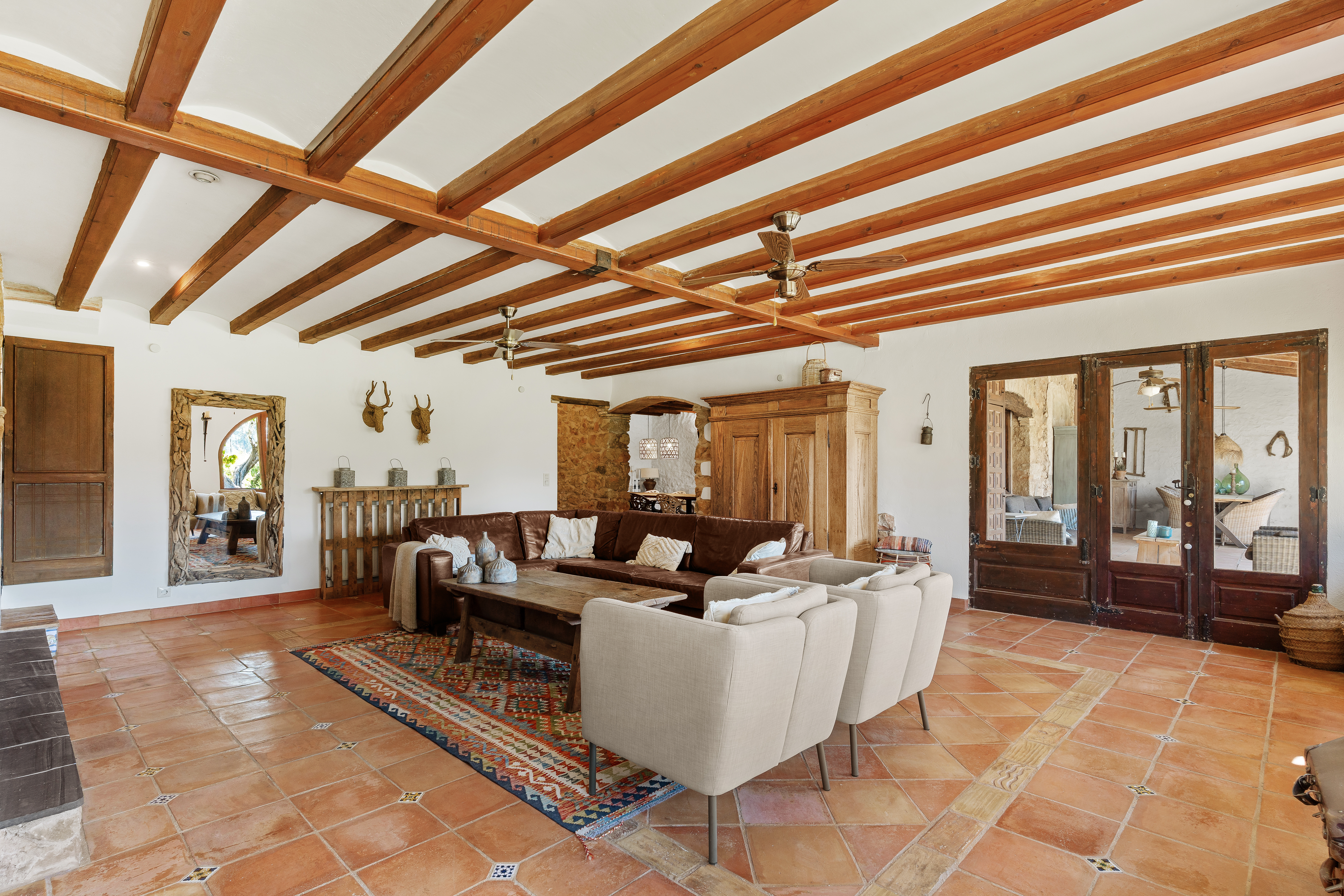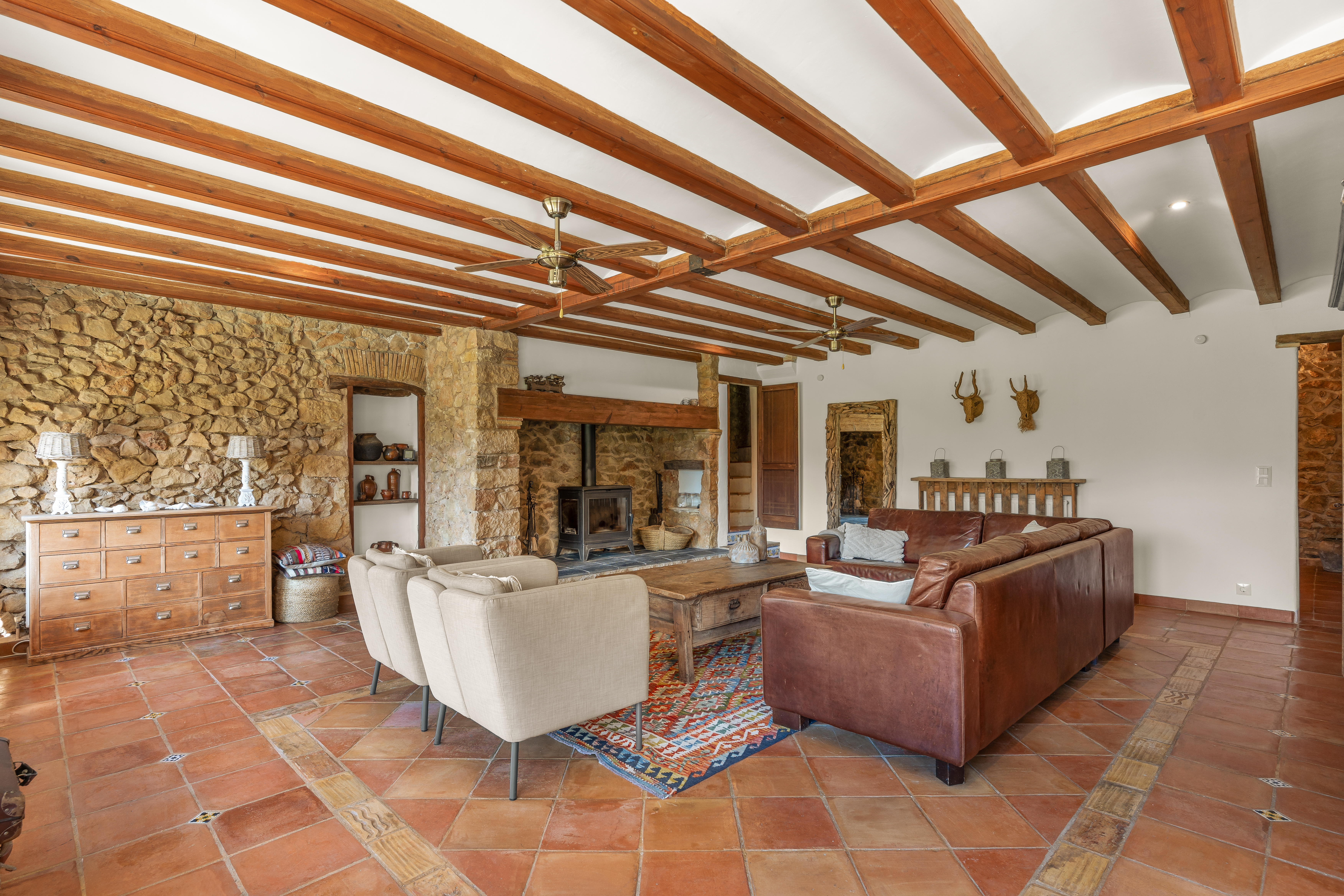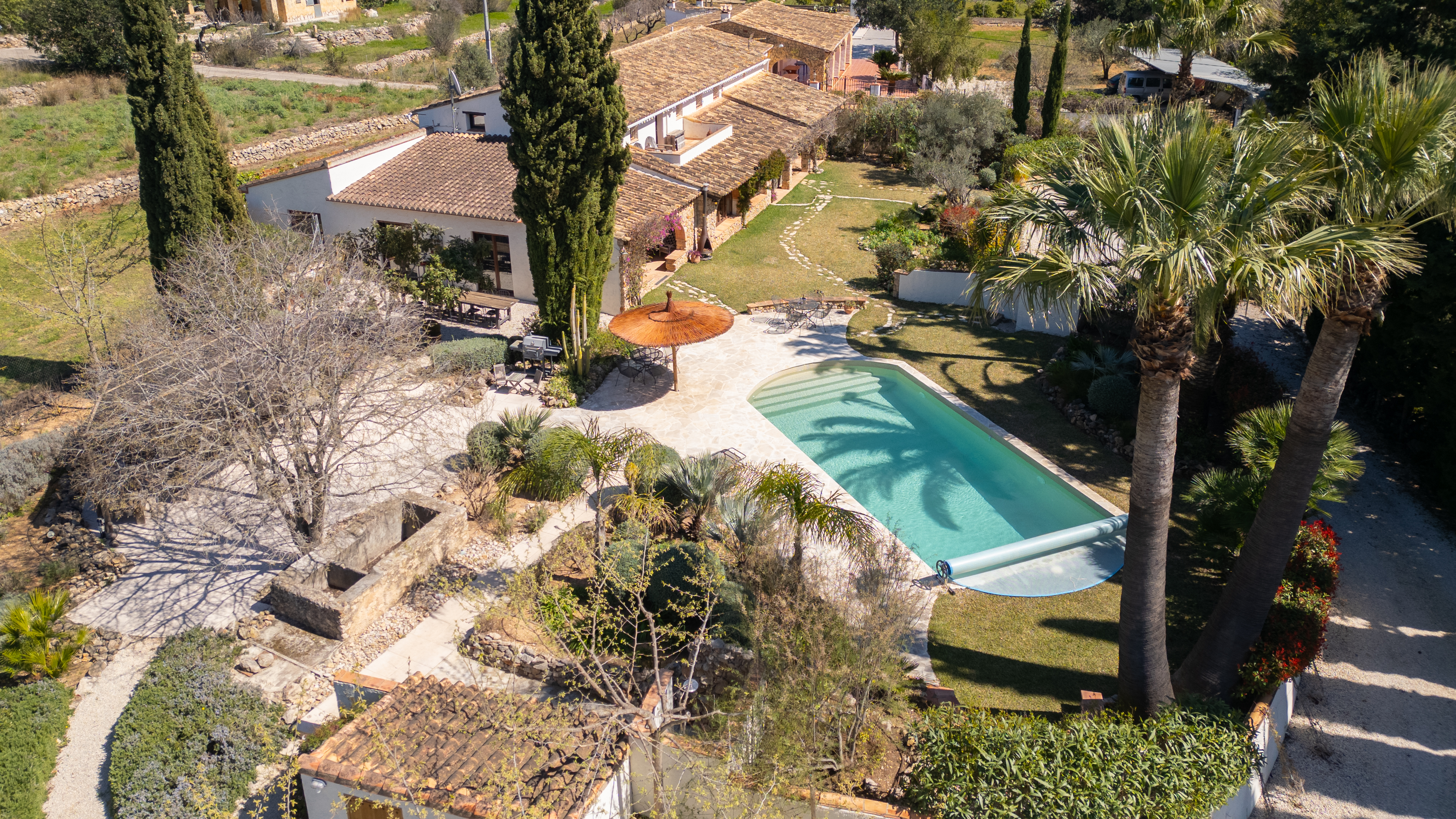 Met een woonoppervlak van 367m², verdeeld over 6 slaapkamers en 4 badkamers, biedt deze finca een perfecte balans tussen ruimte en intimiteit. De verschillende leefruimtes, waaronder een royale living, een aparte eetkamer en een comfortabele tv-kamer, creëren een gevoel van luxe en vrijheid. Authentieke details zijn zorgvuldig behouden en geven de woning een warme, tijdloze uitstraling.