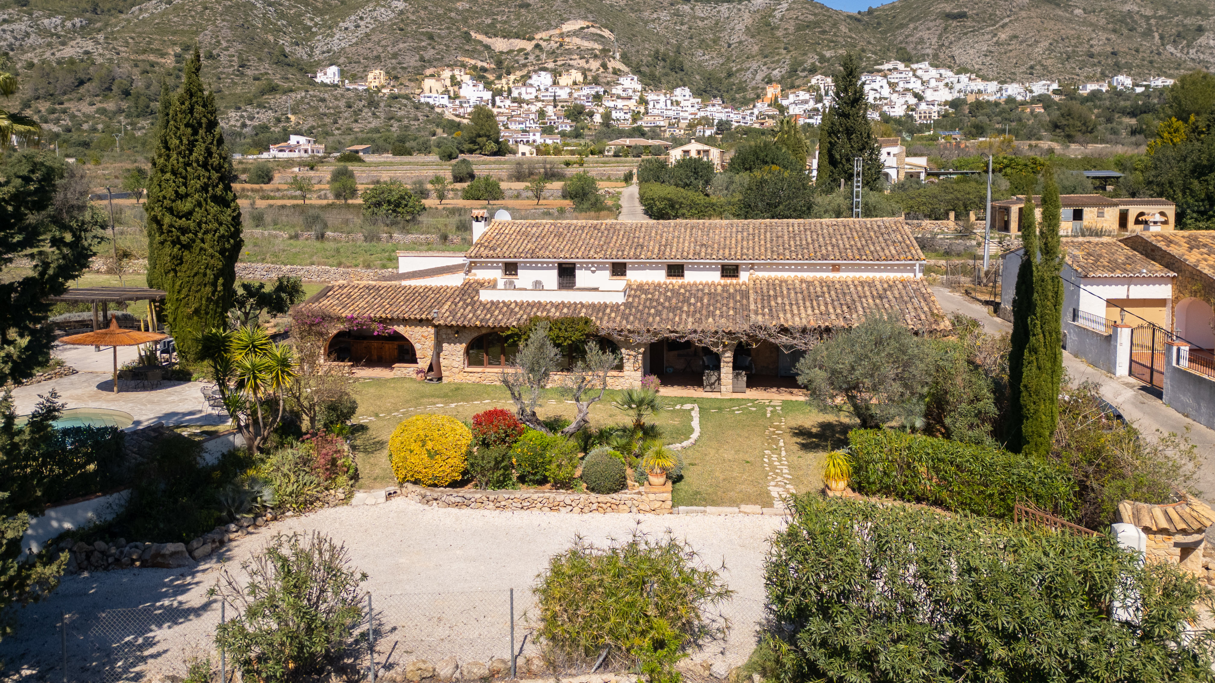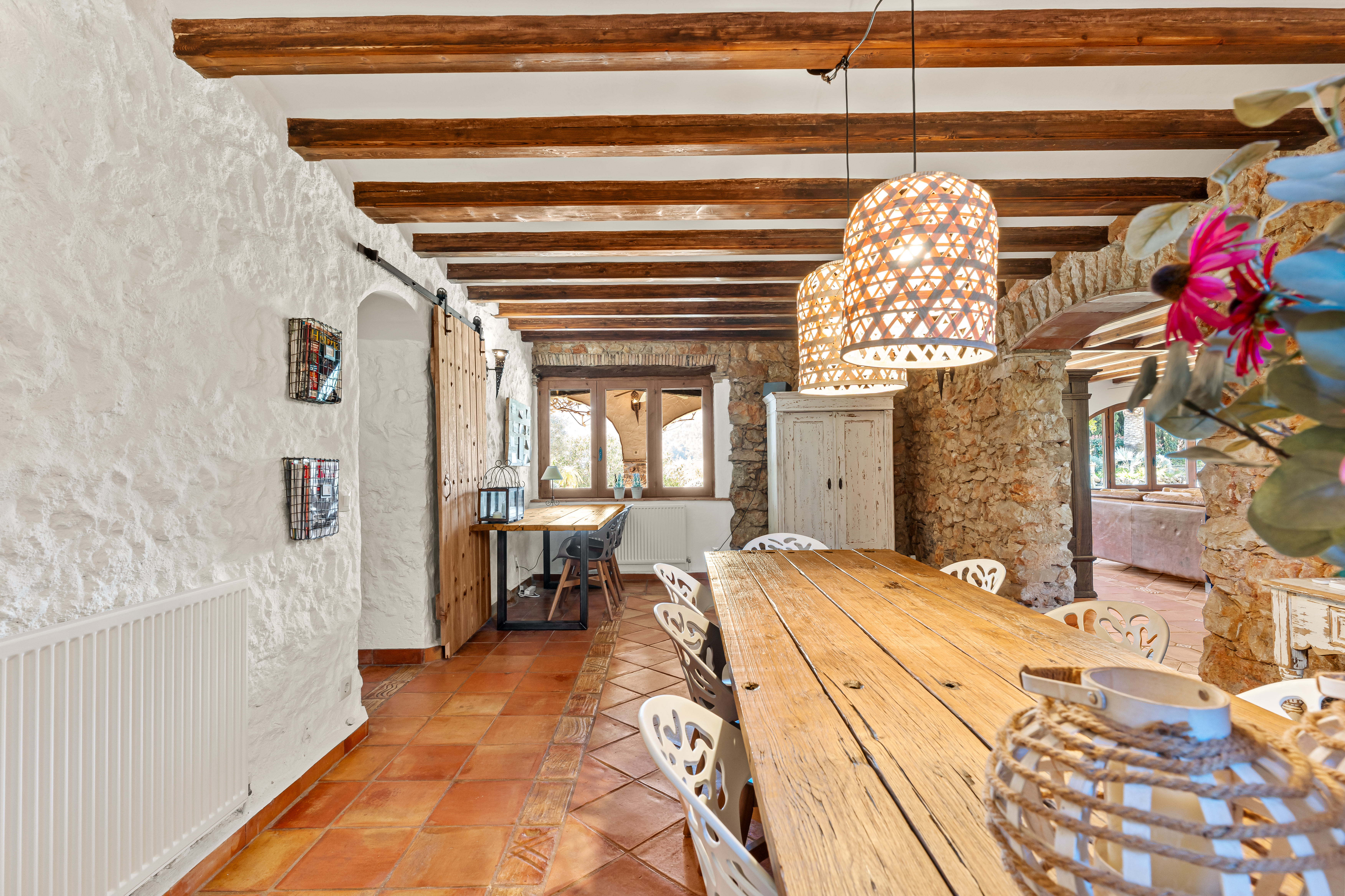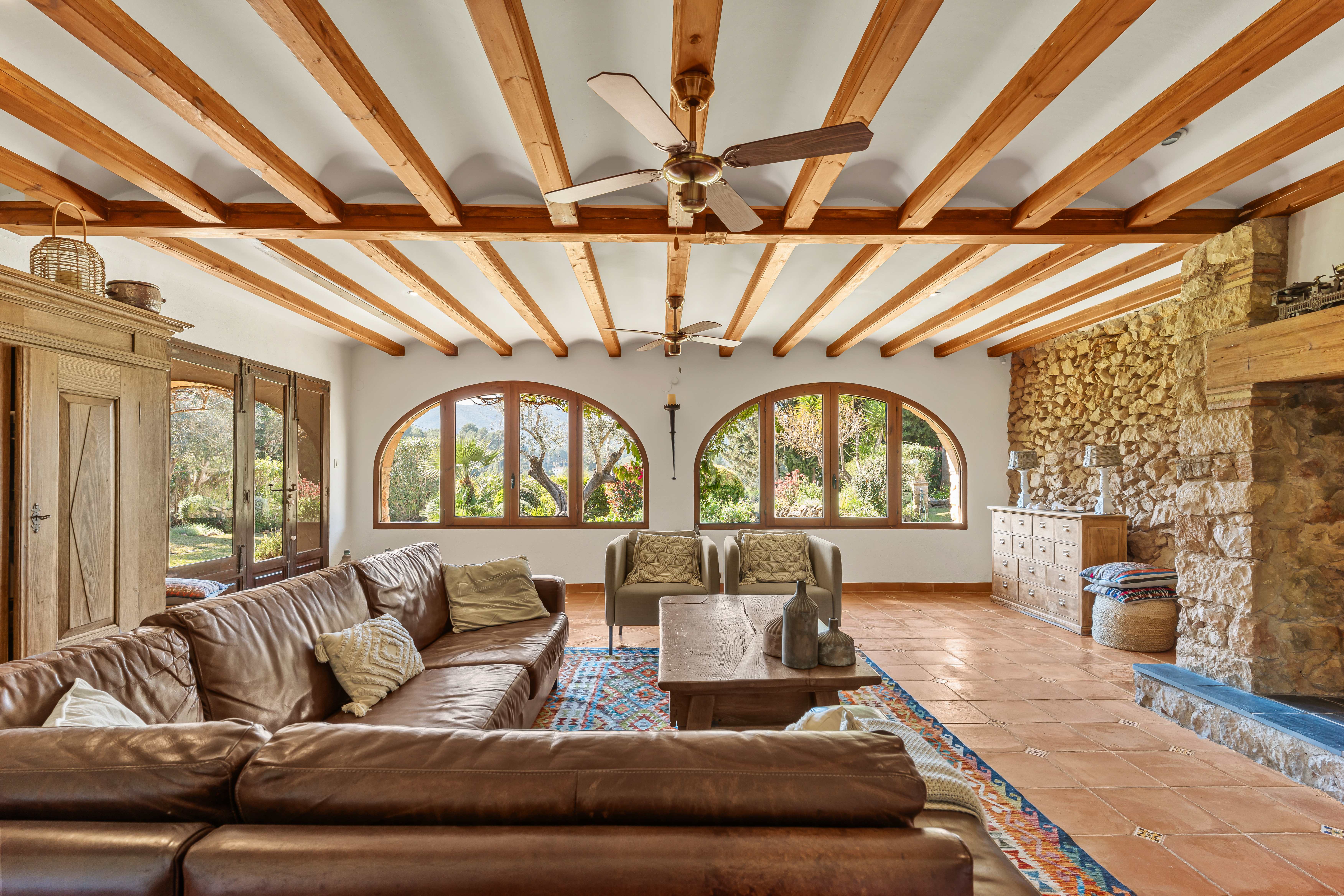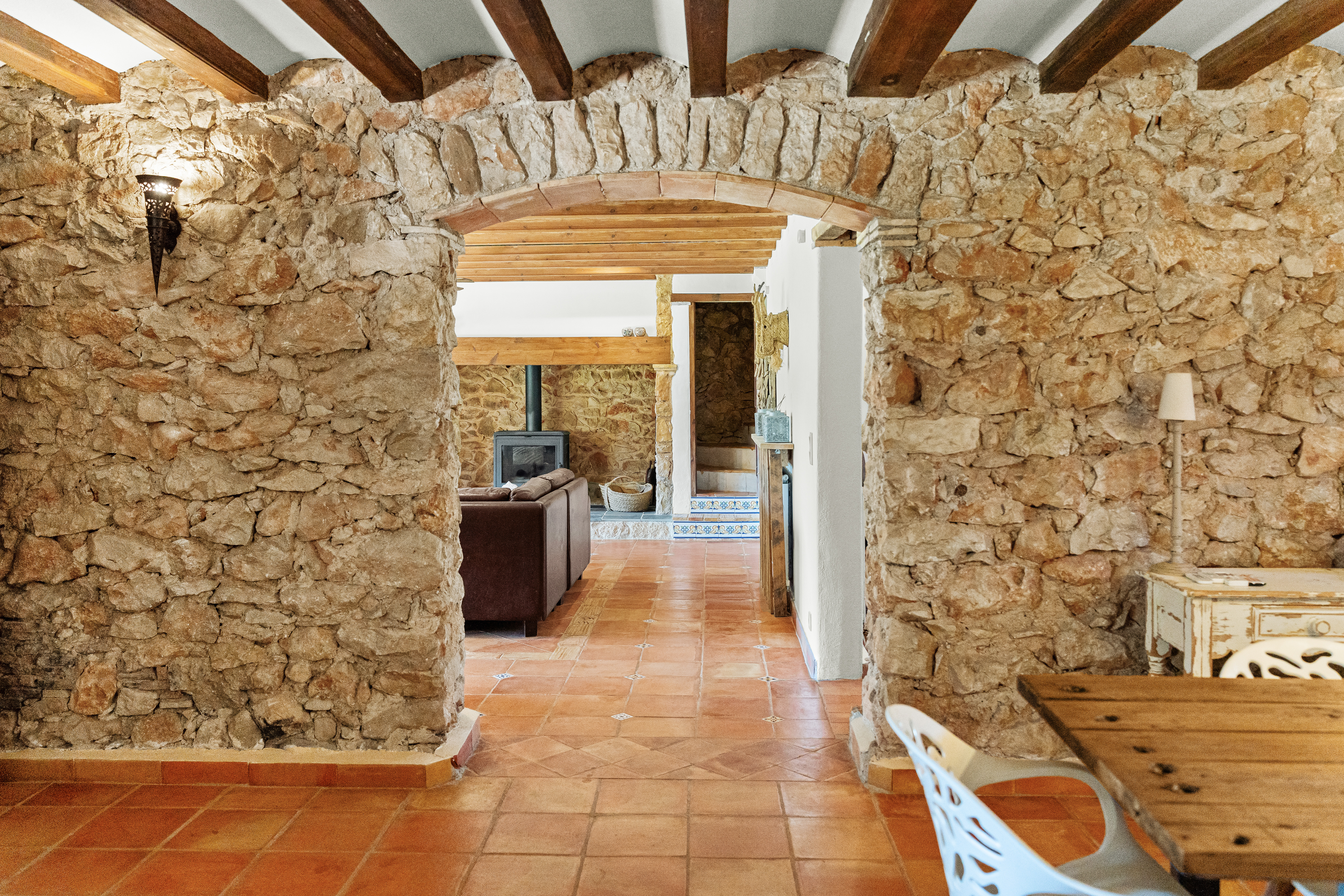 Met een woonoppervlak van 367m², verdeeld over 6 slaapkamers en 4 badkamers, biedt deze finca een perfecte balans tussen ruimte en intimiteit. De verschillende leefruimtes, waaronder een royale living, een aparte eetkamer en een comfortabele tv-kamer, creëren een gevoel van luxe en vrijheid. Authentieke details zijn zorgvuldig behouden en geven de woning een warme, tijdloze uitstraling.