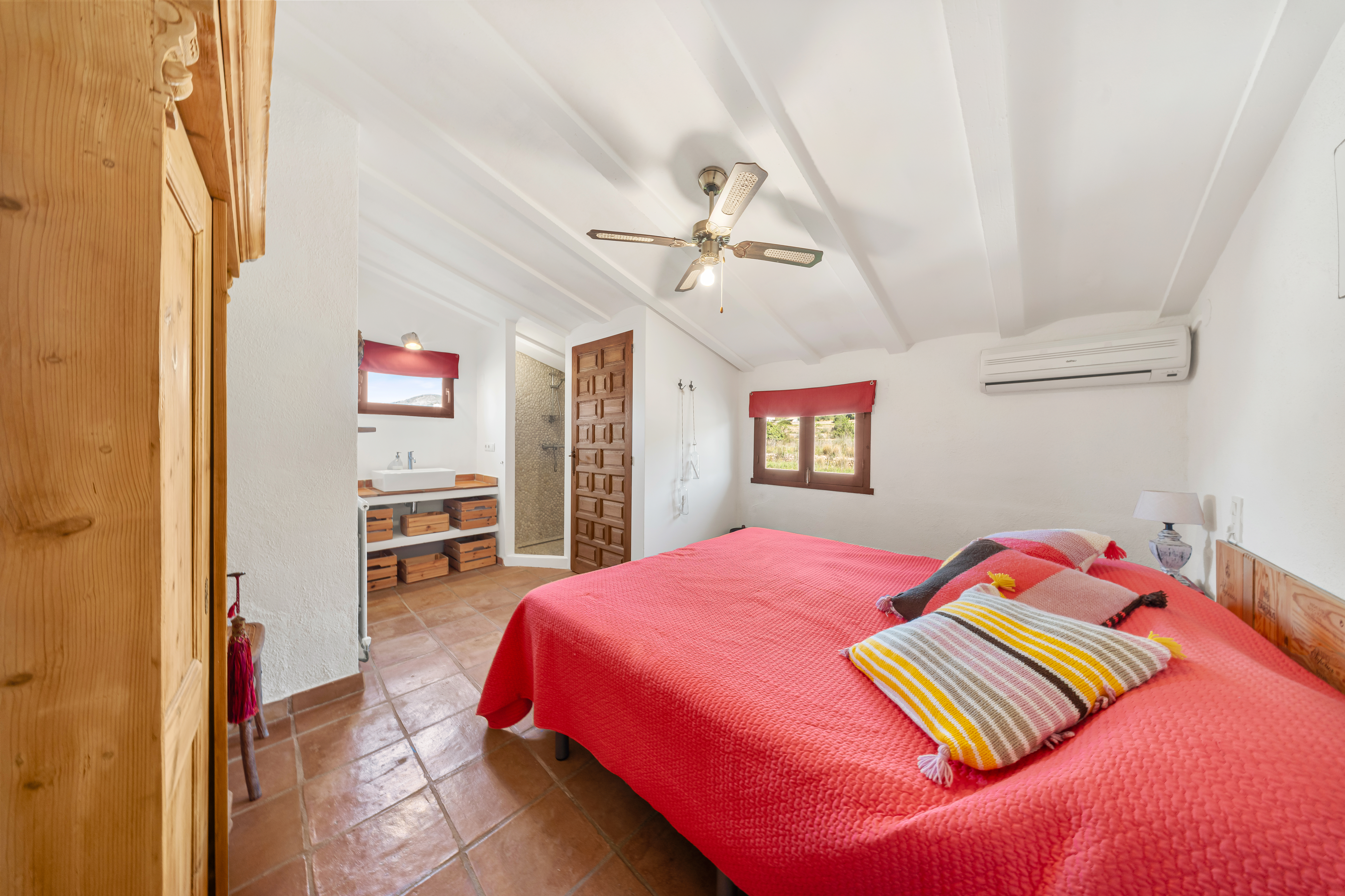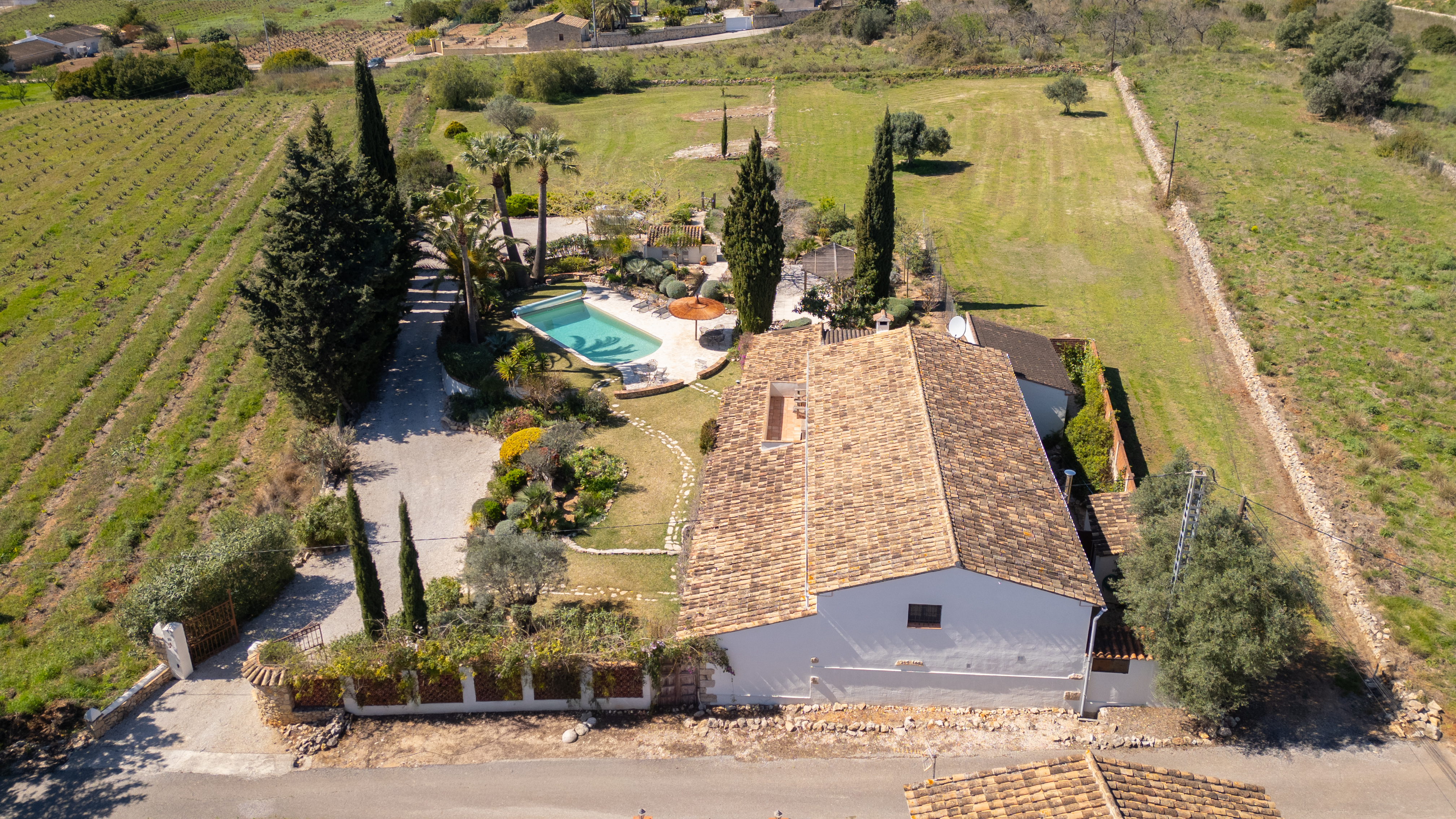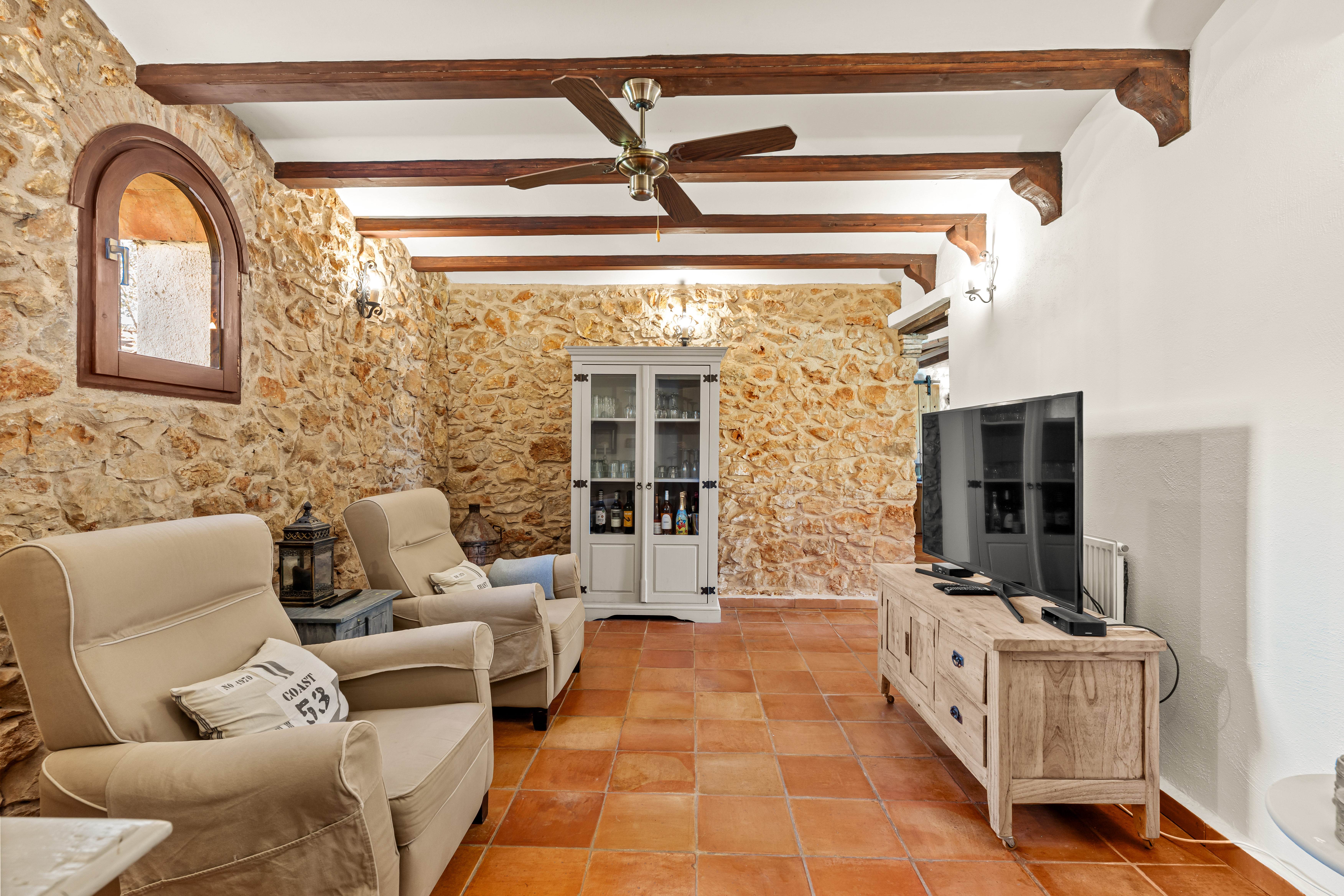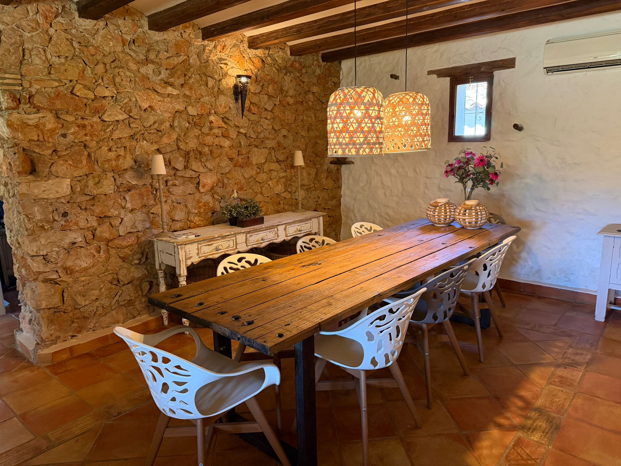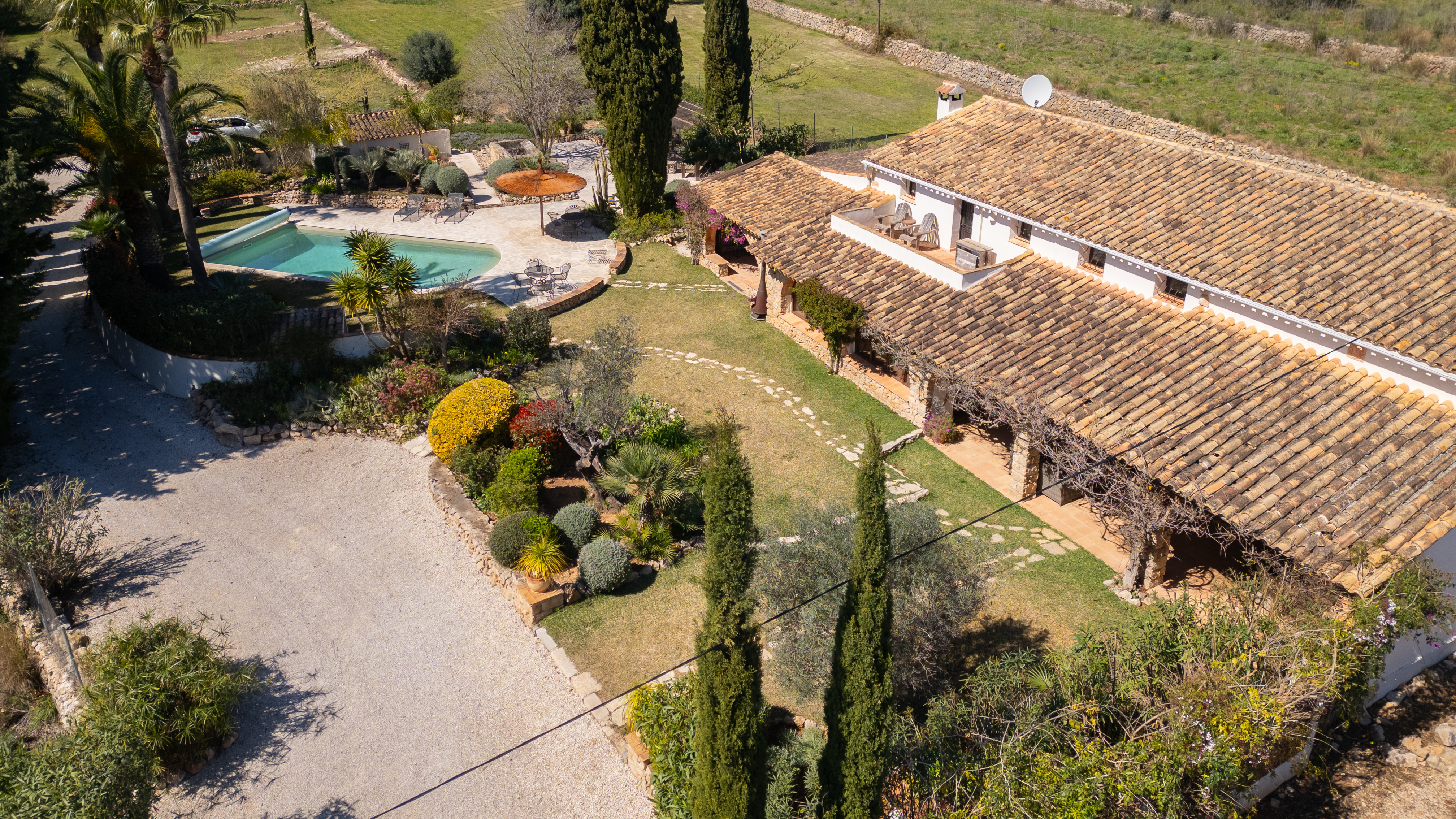 Met een woonoppervlak van 367m², verdeeld over 6 slaapkamers en 4 badkamers, biedt deze finca een perfecte balans tussen ruimte en intimiteit. De verschillende leefruimtes, waaronder een royale living, een aparte eetkamer en een comfortabele tv-kamer, creëren een gevoel van luxe en vrijheid. Authentieke details zijn zorgvuldig behouden en geven de woning een warme, tijdloze uitstraling.