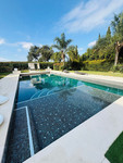 Stunning villa located in the prestigious San Roque Club urbanization, one of the best golf courses in Andalusia, with private access and 24-hour security, including a guardhouse and security officer throughout the development. This magnificent villa boasts unobstructed views of the golf course and mountains. Situated on a 2,250 m² plot with a 600 m² built area, it is distributed over three floors. It comprises six spacious bedrooms, each with an en-suite bathroom and dressing room. One of the bedrooms also features a Turkish bath. The grand living room is spectacular, opening onto the garden and swimming pool. The immense kitchen is equipped with luxurious details and Miele appliances. The dining room is conveniently located adjacent to the kitchen, and there is also a large room dedicated to an exclusive wine cellar. A separate apartment with its own kitchen is also included on the ground floor. The garden area features a chill-out zone, a pool table, a dining area, a barbecue, a fully enclosed gym, and an enormous 12x6 meter swimming pool! At the rear, there's a closed garage for two cars and additional parking space outside but still within the private property. This villa also features underfloor heating and a Sonos sound system. Your dream villa is available for viewing.