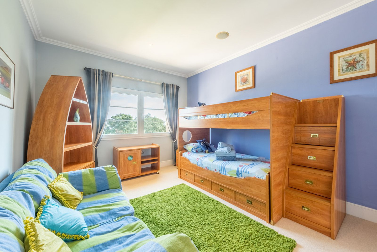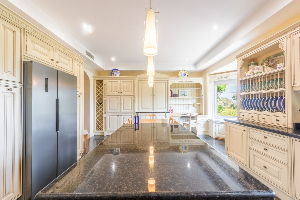 The formal living room also has a "hidden door" which leads to 2 downstairs guest bedrooms and a shared bathroom. The kitchen features a rustic style with granite worktops, American-style fridge/freezer, newly fitted appliances and an island countertop with adjoining kitchen table. Off the kitchen is a formal dining room which leads to the large enclosed terrace/conservatory. In addition, further down the hall is the separate smaller family room which makes for a more cosy environment but still offers multiple seating areas. This villa has a lot to offer and is perfect for families and hosting guests.