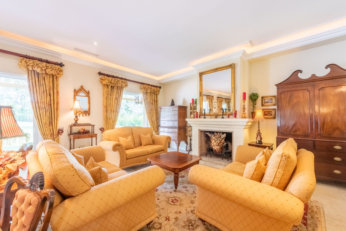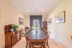 The beautiful entrance hall leads to a large sunken formal lounge boasting a large fireplace and multiple seating areas. This large living room leads onto the enclosed terrace which has more comfortable seating and a large dining area. Fitted with glass curtains, this is a perfect area for dining outside in both warm and cooler seasons. One of the many high-end features is the swimming pool complex with cascading falls and a hot tub jacuzzi.