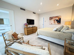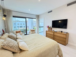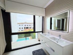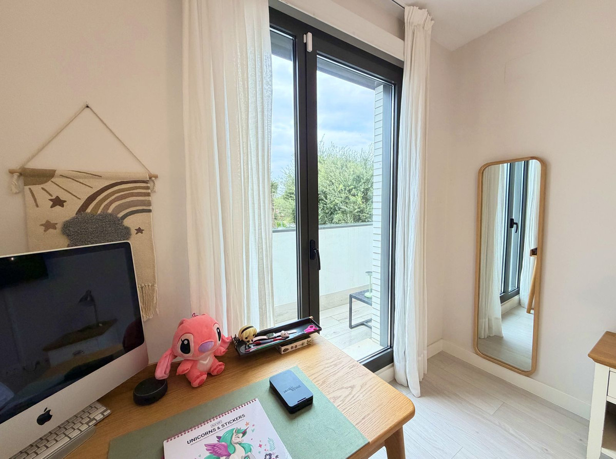 Op de bovenverdieping bevindt zich de master bedroom met en-suite badkamer en een glazen balkon. De twee overige lichte slaapkamers beschikken over inbouwkasten, delen een complete badkamer en hebben toegang tot een tweede balkon met uitzicht op de gemeenschappelijke entree. Op het hoogste niveau biedt het solarium een indrukwekkend decor: een ruime, open ruimte met panoramisch uitzicht op zee, golf en de natuurlijke omgeving, ideaal voor het creëren van een chill-out zone, een barbecueplaats of om simpelweg te genieten van de zon en privacy. Twee parkeerplaatsen, elektrische zonwering, hoogwaardige afwerkingen en de mogelijkheid om de huidige studeerkamer om te bouwen tot een vierde slaapkamer maken deze woning compleet.