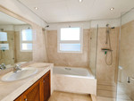 The property offers three generous en-suite bedrooms, all with direct access to terraces. The master suite features a walk-in wardrobe and open views. On the entrance level, one bedroom opens onto the large main terrace, while the remaining two bedrooms are located on the upper floor, each enjoying its own private terrace, ensuring privacy and independent outdoor spaces.