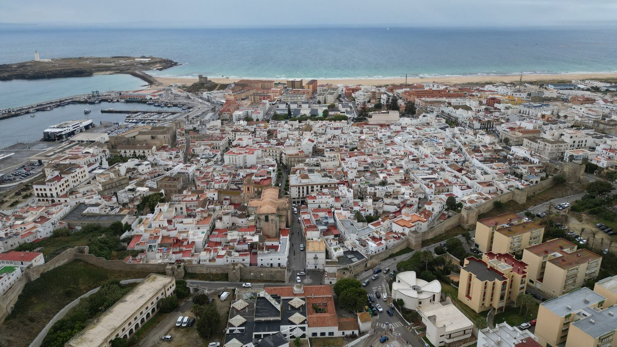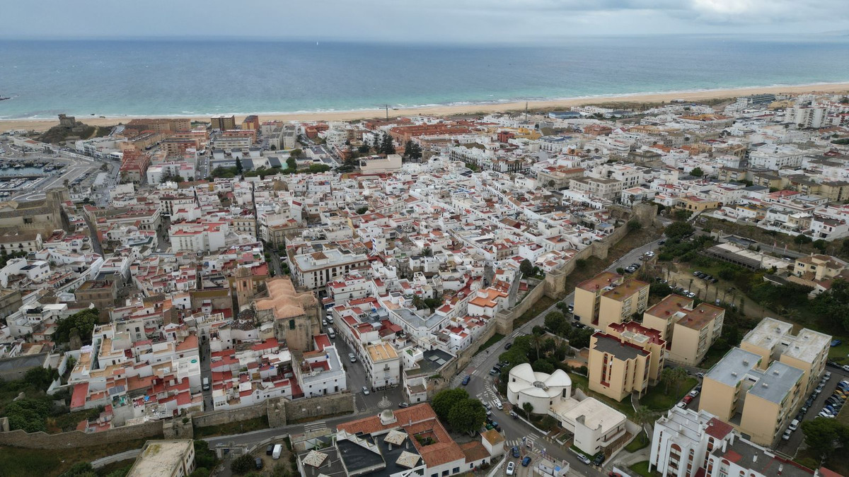 A unique property, a large corner house overlooking the plaza and with access from two streets, unique because it is located directly on the medieval wall of Tarifa, through which it has one of its entrances. Who can say that he walks along the battlements inside his own house?