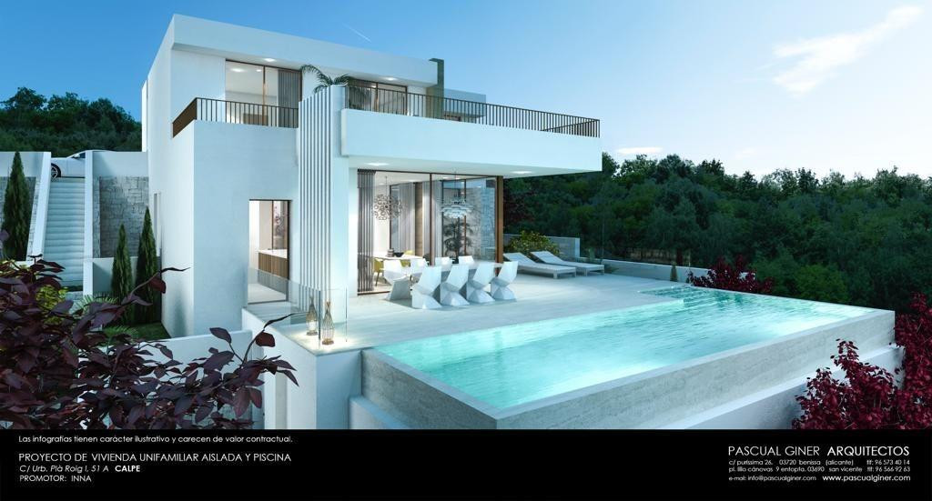 A magnificent plot of approximately 800 m² is for sale, located in one of the most attractive and quiet areas of Calpe, a charming and picturesque municipality on the Costa Blanca. The plot is just 1.4 km from the sea and the city's most famous sandy beaches, making it an ideal option for those dreaming of having a home near the sea, while at the same time valuing privacy and tranquility. Within walking distance are restaurants, cafés, supermarkets, and the promenade, perfect for enjoying pleasant walks at any time of day. The area is safe, quiet, and has excellent connectivity to the center of Calpe, as well as quick access to the AP-7 motorway, which allows easy travel to Alicante, Benidorm, or Moraira.The plot has an approved project for the construction of a modern house of 264 m², along with a valid building permit, allowing the new owner to start construction immediately, without delays or additional procedures.According to the project, the house will have three spacious bedrooms, three bathrooms, a bright living room with large windows and direct access to the terrace, an open-concept kitchen, laundry area, and parking. Outside, an elegant relaxation area with a private pool, garden, and several terraces with open views of the mountains and natural surroundings is planned.Calpe is a place with a special charm, where the natural beauty of the Mediterranean combines with modern infrastructure. The imposing Peñón de Ifach, a symbol of the city, dominates the landscape and creates a unique atmosphere. Calpe offers everything necessary for comfortable living year-round: schools, supermarkets, sports centers, medical clinics, restaurants, and a marina with an authentic Mediterranean ambiance. With its mild climate and more than 300 days of sunshine a year, it is a perfect destination for both permanent residence and vacation or investment.This plot represents an excellent opportunity to build a dream home near the sea, in one of the most sought-after areas of the Costa Blanca. Its location, the already approved project, building permit, and proximity to all services make this property an ideal option for personal use as well as for investment.