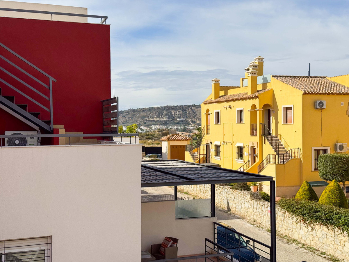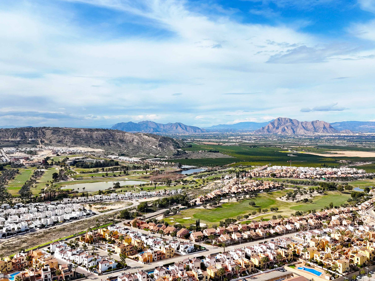 Wij presenteren deze nieuwe en ongebruikte woning, gelegen in een van de meest bevoorrechte en waardevolle gebieden van de Costa Blanca Zuid. Het huis ligt op slechts 1 km van de prestigieuze golfbaan La Finca en biedt een ideale locatie voor golfliefhebbers en rustzoekers, maar met uitstekende verbindingen, dicht bij de snelweg en een korte autorit van stranden, luchthavens en nabijgelegen steden. Het bevindt zich op slechts 6 km van het centrum van Algorfa.De rijwoning heeft 3 slaapkamers en 2 badkamers, een ruime woonkamer en keuken, ontworpen om te genieten van lichte en functionele ruimtes. Buiten is er een gezellige veranda, terrassen op de eerste en tweede verdieping en een solarium, allemaal met uitzicht op het spectaculaire berglandschap.Een van de grootste attracties is de 57 m² grote kelder-garage, met eindeloze mogelijkheden: werkplaats, recreatieruimte, wijnkelder of opslag. Daarnaast kan er in de tuin een privézwembad worden gebouwd, aangepast aan jouw levensstijl.De woning ligt direct achter een winkelcentrum met restaurants, wat gemak en toegang tot diensten combineert met de rust van de woonwijk. De locatie is onovertroffen: slechts 15 minuten van de stranden van Guardamar del Segura, 35 minuten van de luchthaven Alicante, en dicht bij stedelijke centra zoals Almoradí, Benijófar, Ciudad Quesada, Torrevieja en Orihuela Costa, waar je grote winkelcentra en diensten vindt.Dit is een unieke kans om een moderne woning te verwerven in een exclusieve en perfect verbonden omgeving, een perfecte optie voor golfliefhebbers.Aarzel niet om contact met ons op te nemen voor een bezichtiging!
