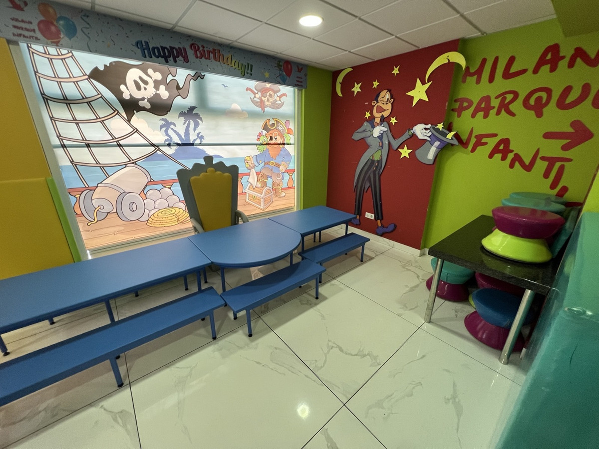 Op het terrein zijn verschillende bedrijven gevestigd: op de eerste verdieping een activiteitencentrum voor kinderen met een superheldenthema – ideaal voor kinderfeestjes, op de begane grond vindt u een familierestaurant met een geweldig zonnig terras, ga naar het dak en vind je een chill out lounge / bar die momenteel in aanbouw is, met een prachtig uitzicht op het zoutmeer en de omgeving – evenals een studio live in accommodatie.