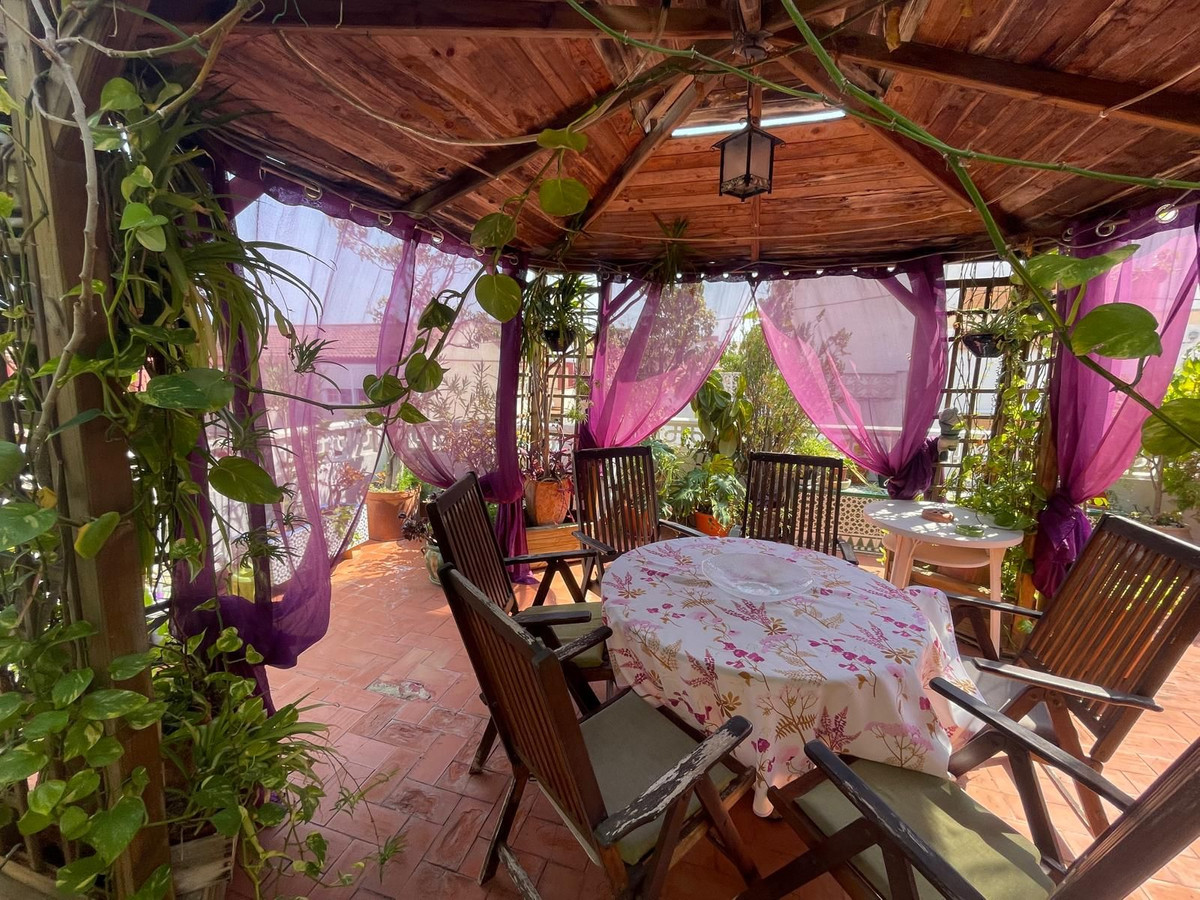 Nestled among the greenery is a charming gazebo, ideal for al fresco dining, entertaining guests, or simply unwinding with a book in the breeze. The outdoor space flows effortlessly into the home's roof terrace, where panoramic mountain views stretch across the horizon—offering a daily dose of inspiration and calm. The home's classic Spanish architecture features warm terracotta tones, elegant ironwork, and sunlit balconies. Whether you're soaking in the views from the solarium or hosting under the stars, this property is designed to elevate your lifestyle. With three spacious floors, private parking, this is more than a home—it's a destination.
