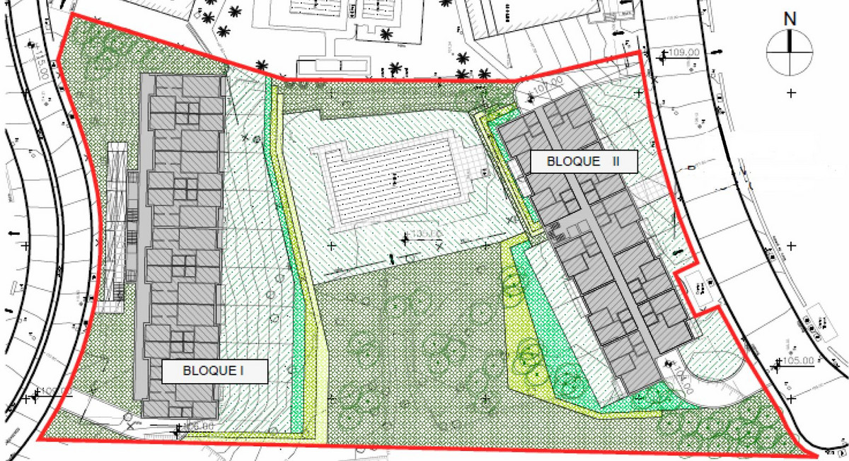 Grond in Riviera del Sol met de mogelijkheid om 64 appartementen te ontwikkelen met 2 en 3 slaapkamers, elk met een eigen berging en parkeerplaats. Bouwoppervlakte van 7.080 m2 voor residentieel gebruik, compatibel met hotelgebruik. Bouwvergunning verleend in 2012 en verlopen. Voorlopig project voor twee woonblokken met 7.017 m2 bovengrondse bebouwing.
