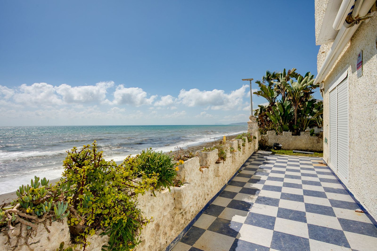 Een zeldzame kans om een villa direct aan het strand te bezitten, op slechts een steenworp afstand van de bruisende jachthaven van Estepona, met directe toegang tot de boulevard en het zandstrand vanuit uw eigen privétuin.