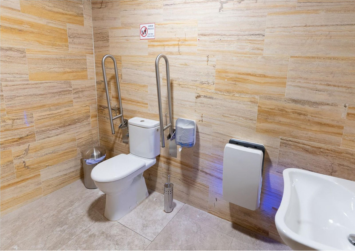 The premises has two bathrooms, one of them adapted for people with reduced mobility, and a storage room on the mezzanine floor.