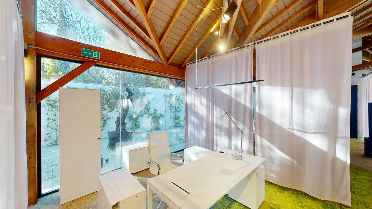 In recent years, the current owner has transformed this space into a modern co-working centre, taking advantage of its size and structure. The mill now houses more than 20 workstations, along with meeting and presentation rooms, a fully equipped kitchen and a computer and server room, adapting to contemporary working needs.