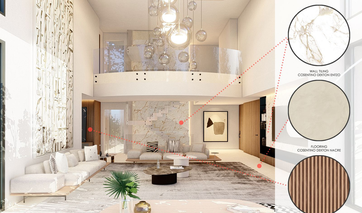 From this lovely feature the bedrooms of the first floor are accessed. The master bedroom designed with high ceilings of 19sqm with a separate dressing room area of 15m2, and luxury ensuite bathroom of 12.5m2. This master suite accesses the west-facing uncovered terrace of 16m2.