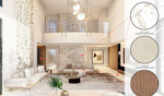 The ground floor is designed over 395m2, this size includes the pool and the terraces, and comprises of a large open plan living area of 77m2 with double height ceiling and huge floor to ceiling windows. Impressive architecture which frames the lovely pool and garden area outside.