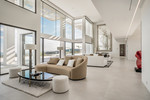 The combination of spacious living areas, breathtaking sea views, and well-appointed rooms make this living room a truly extraordinary and luxurious haven, providing both comfort and elegance in a stunning seaside setting.