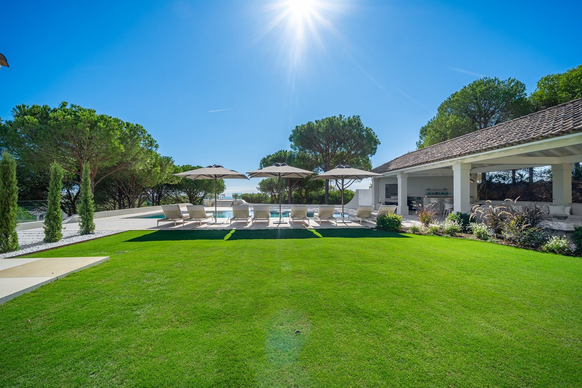 The exterior has been renovated with a summer kitchen, outdoor dining area, relaxation areas, and a viewpoint facing the golf course and the sea. The plot includes over 7,600 m², with the option to expand the garden or add additional facilities. Sotogrande Alto is characterized by its security, residential exclusivity, and proximity to international schools, golf courses, and the marina, making it one of the most valued locations on the Costa del Sol for those seeking quality of life and a privileged environment