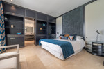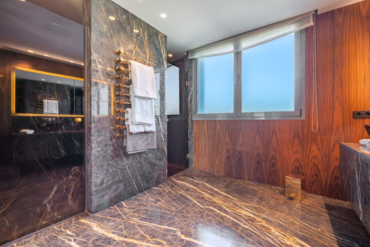 The main house, with over 1,200 m² built, is distributed over three floors connected by an elevator. Each room has been designed to offer comfort, brightness, and open spaces that naturally connect with the outdoor environment. On the entrance floor, a vestibule leads to a living room with high ceilings and panoramic windows. Adjacent to this are a study, a guest bedroom, a separate dining room, a family room, and a fully equipped kitchen. From these areas there is direct access to the garden and the pool, favoring indoor and outdoor living all year round. Also worth noting is a glazed terrace and a private guest suite. The upper floor houses the master suite, with a private terrace and clear views of the Mediterranean, as well as three additional en-suite bedrooms. On the lower level, there is a separate apartment, along with a complete leisure area with a gym, sauna, wine cellar, cinema room, and storage spaces.