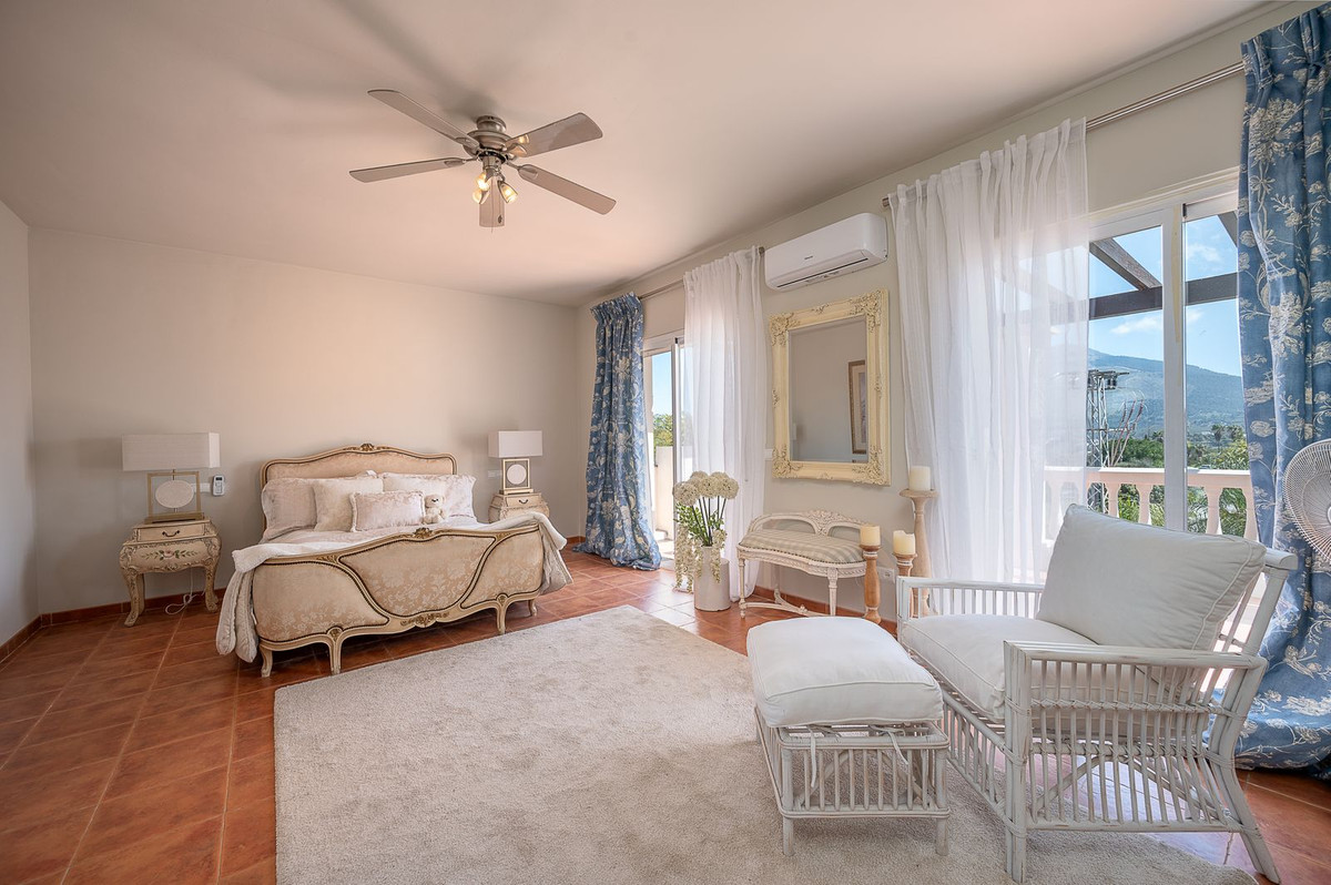 Prachtige vrijstaande villa in Coín op een ruim perceel met privézwembad en verzorgde tuin, perfect om te genieten van het mediterrane leven. Oorspronkelijk ontworpen met 3 slaapkamers, beschikt de woning nu over 2 ruime slaapkamers: één op de begane grond en een indrukwekkende master suite boven met en-suite badkamer en privéterras met prachtig uitzicht op Mijas en Alhaurín.