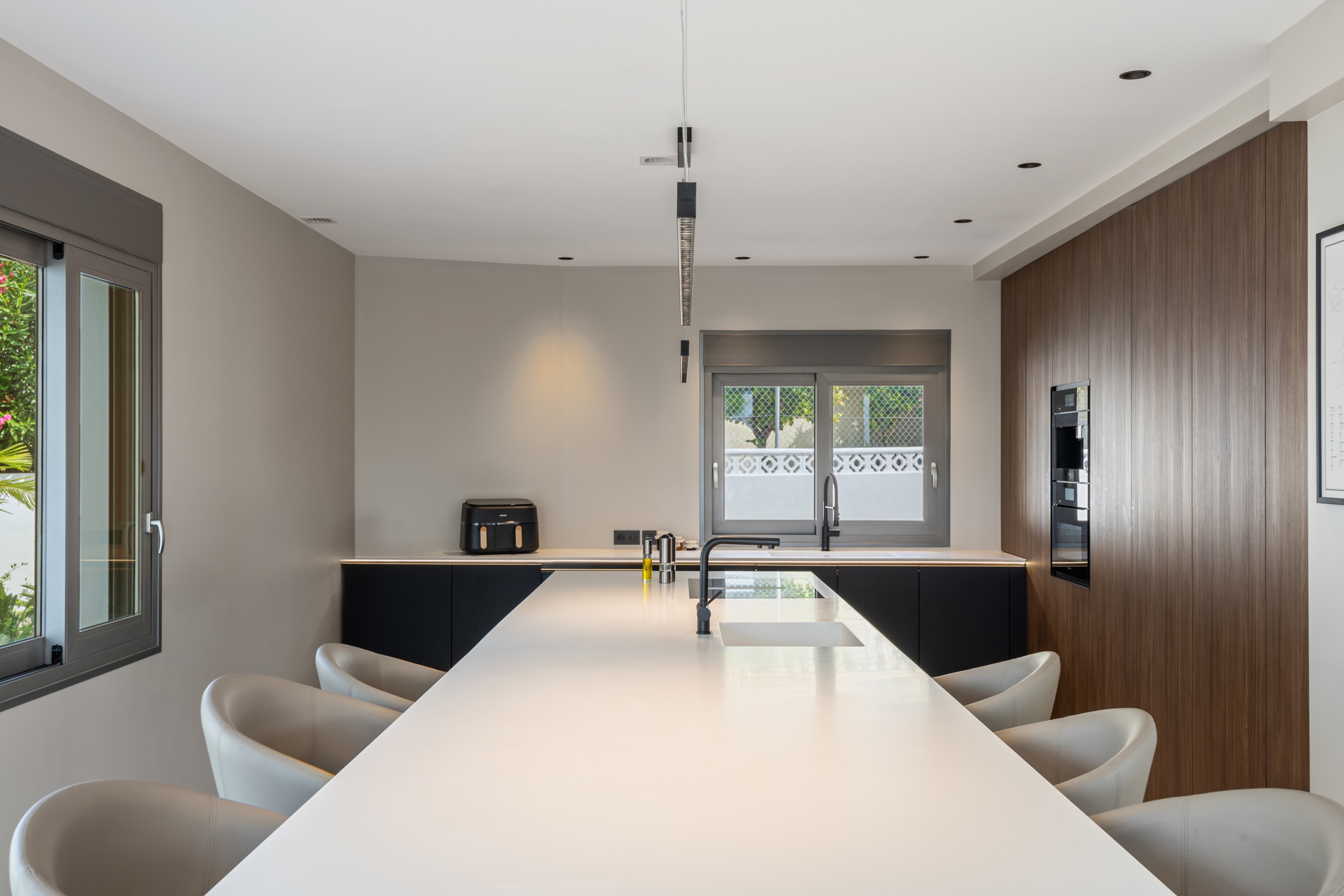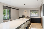 Stijlvolle keuken met een groot eiland, perfect voor informeel dineren en entertainen