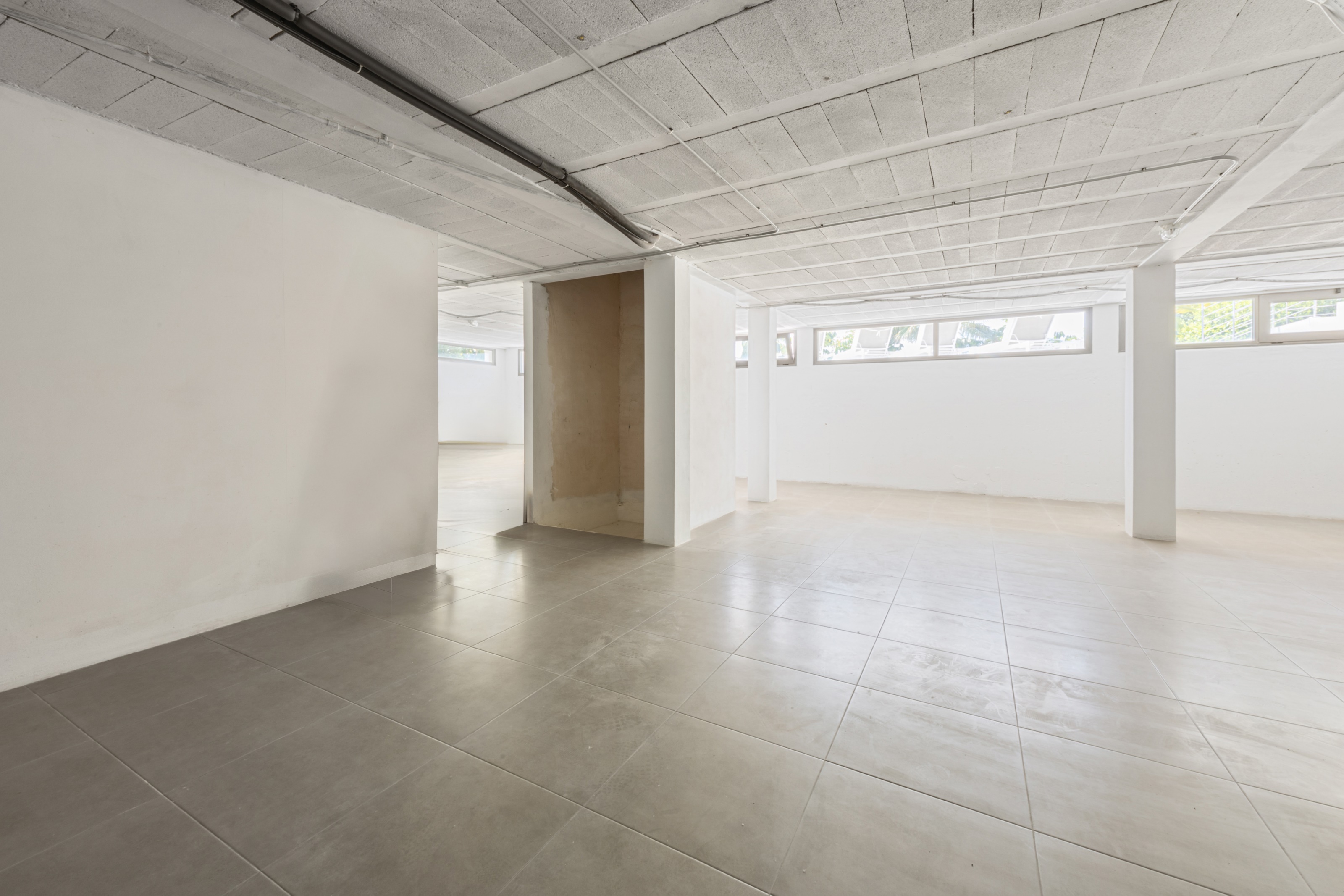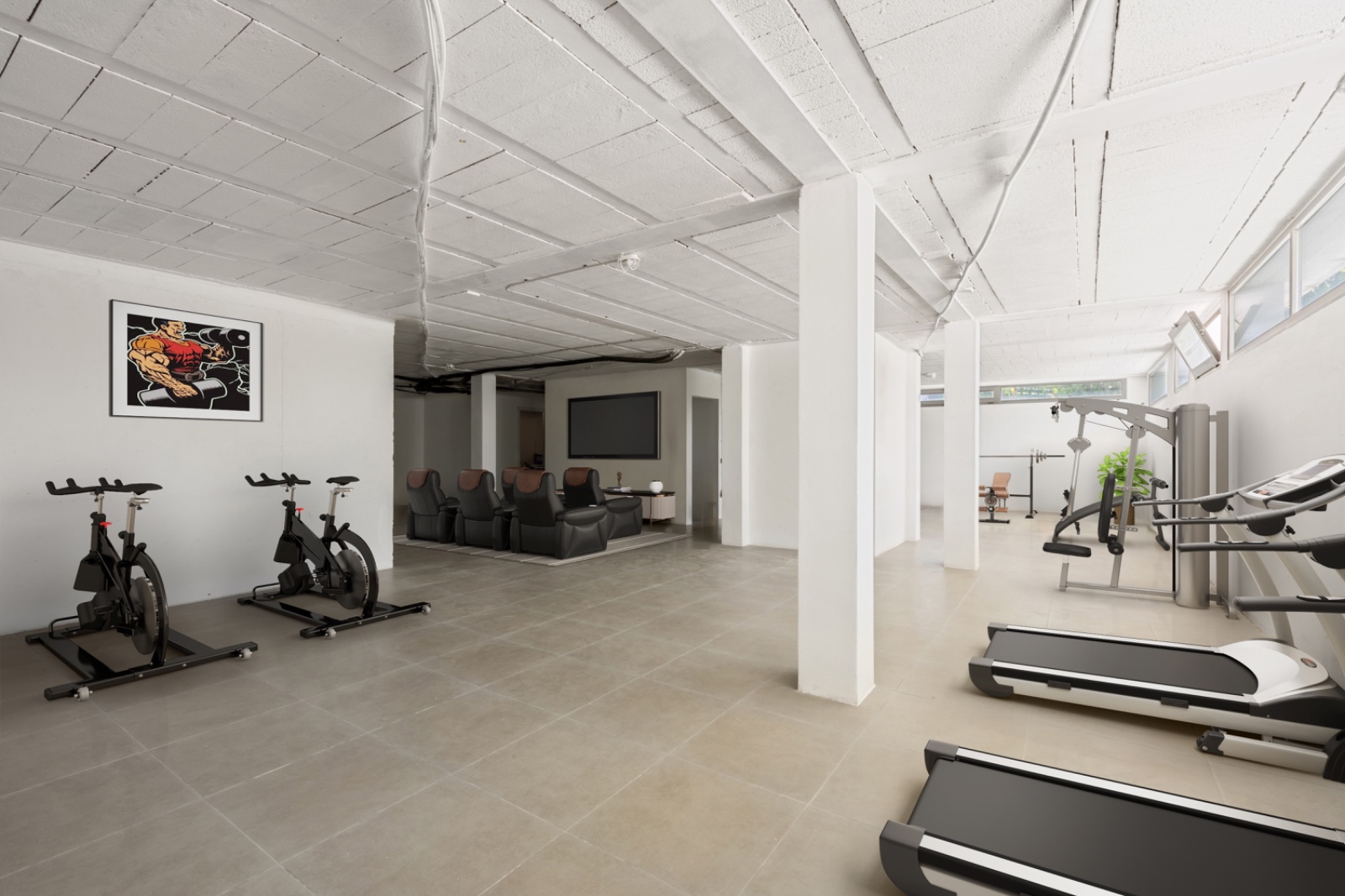 Een grote veelzijdige ruimte die klaar is om te worden omgetoverd tot een thuisbioscoop, fitnessruimte, spa, mancave – of een combinatie