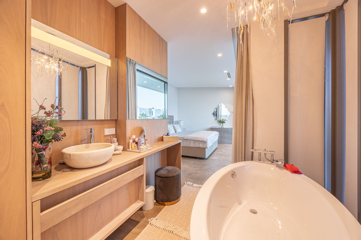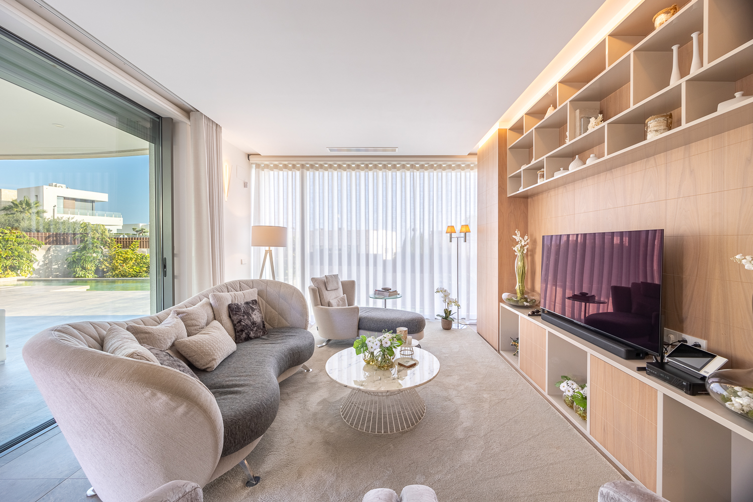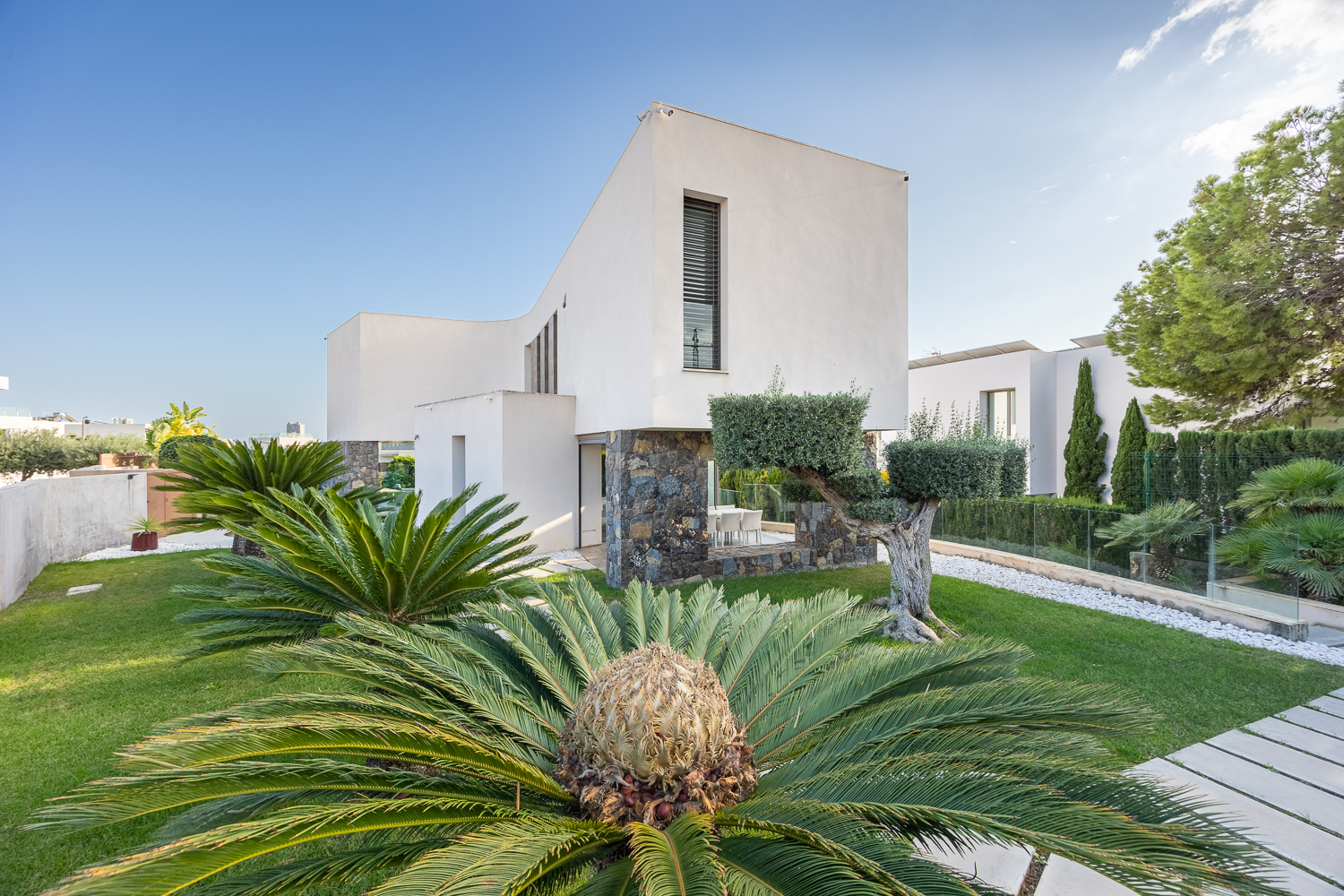 De villa is gebouwd in 2016 en biedt 386 m² verfijnde leefruimte op een royaal perceel van 813 m². De open lay-out toont lichte interieurs, moderne afwerkingen en een naadloze binnen-buitenstroom. De ruime woon- en eetgedeeltes komen uit op zonovergoten terrassen met uitzicht op het privézwembad en de aangelegde tuinen, ideaal voor entertainment of rustige ontspanning.