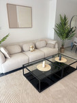 Het interieur straalt kwaliteit uit. De ruime woonkamer loopt naadloos over in een privéterras van 25 m² – de perfecte “buitenlounge” om buiten te dineren of ’s ochtends van een kopje koffie te genieten met uitzicht op het gemeenschappelijke zwembad en de Middellandse Zee.
