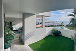 The apartment is filled with natural light and offers a seamless indoor outdoor flow. The open plan living area combines a stylish lounge, dining space, Murphy bed and fully equipped kitchen with integrated appliances, all opening onto a generous covered terrace. From here, you can enjoy the sea views, with both shaded and sunny areas designed for year round enjoyment. The outdoor space is further enhanced by a private garden with artificial grass, planting, and an automatic irrigation system, creating a peaceful setting for relaxing or entertaining.