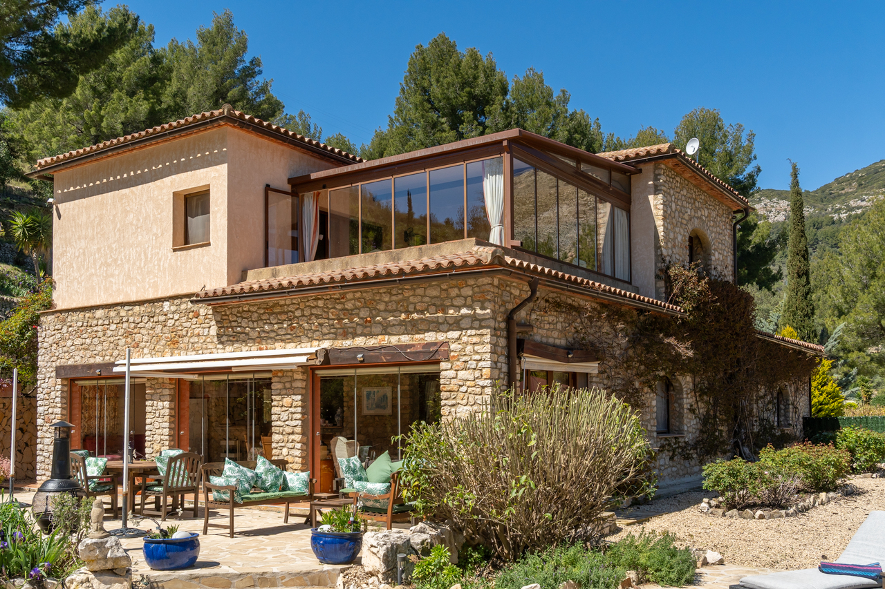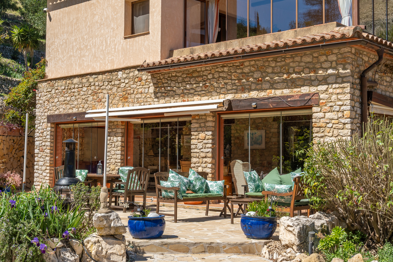 The enclosed naya provides a wonderful, additional sitting room to enjoy the beautiful views and garden, all year round. In front of the naya is a large open terrace with an awning, ideal for al fresco dining.