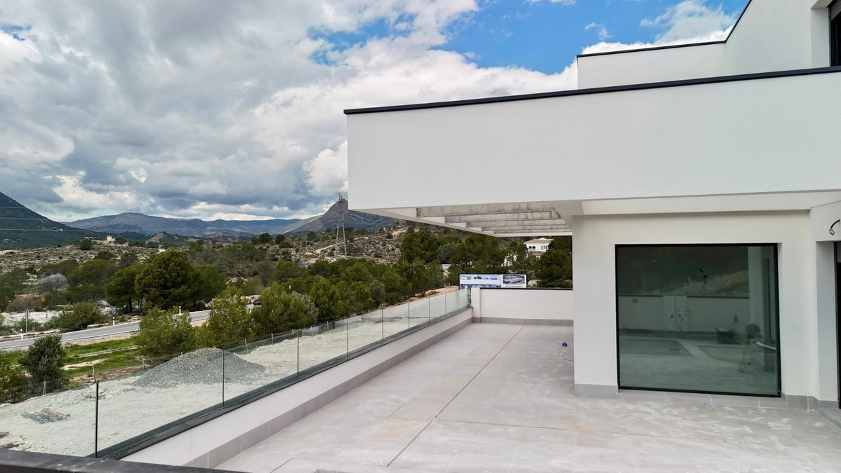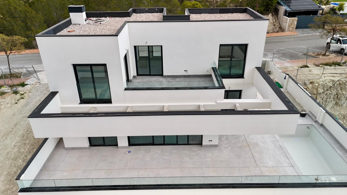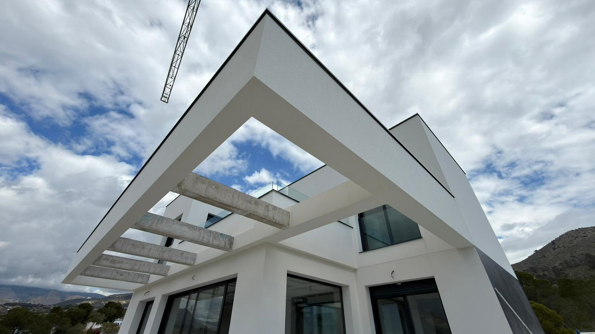 For sale Villa. Location Finestrat (ALICANTE). Total area 327.26 m2. Number of rooms – 3. Number of bedrooms 3. Number of bathrooms 3. Year of construction 2026. Distance to the sea 5.00 km. Plot area 287.99 m2. Orientation West. Features: - Sea views - Private pool - Solarium - Air conditioning