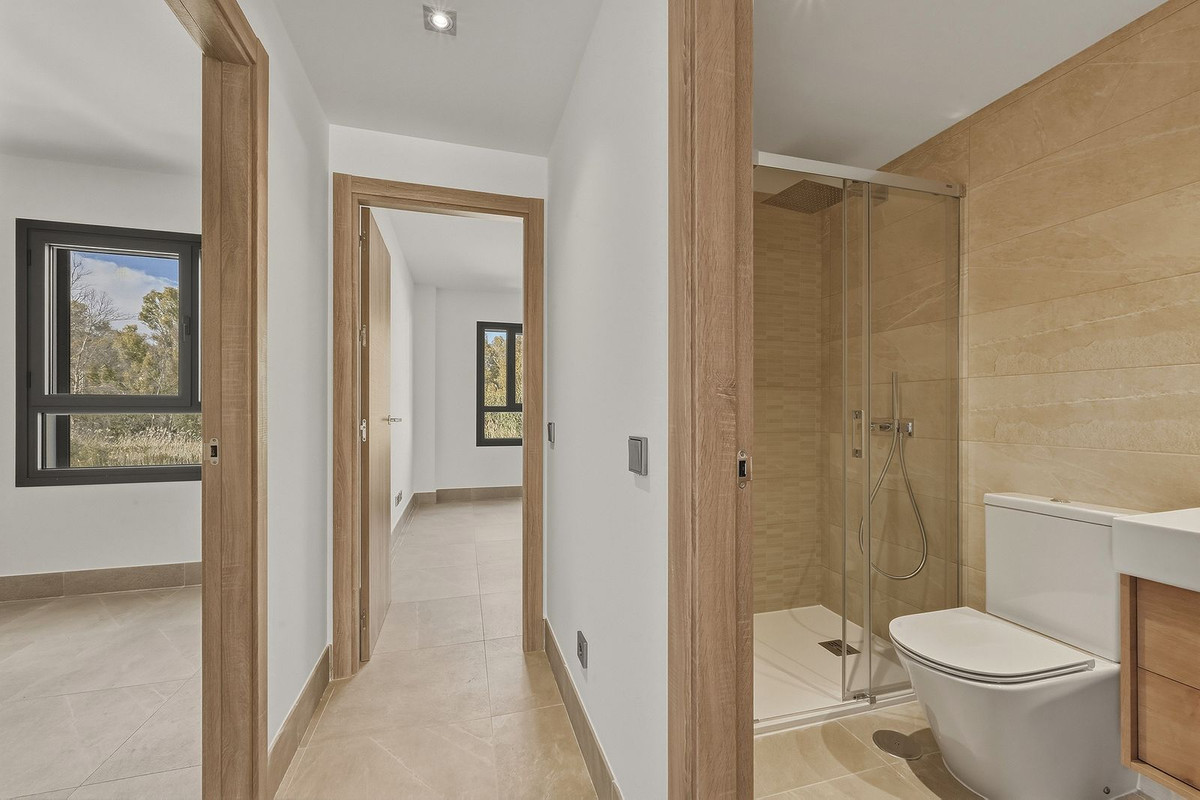 De afwerking is van hoog niveau met duurzame materialen en een eigentijdse, mediterrane uitstraling. Denk aan keramische vloeren, aluminium schrijnwerk met dubbele beglazing, elektrische rolluiken en een geïntegreerd airconditioningsysteem (warm/koud). Dankzij de uitstekende isolatie en energie-efficiëntie (label B) geniet u van optimaal comfort in elk seizoen.