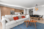 Vanaf de entree ontstaat er een warme sfeer, versterkt door indirecte LED-verlichting in elke kamer. De leefruimte opent naar buiten dankzij grote kamerhoge ramen die volledig in de muren verdwijnen, waardoor een onzichtbare overgang ontstaat tussen de woonkamer en het terras. De keuken is volledig uitgerust met NEFF-apparatuur en beschikt over een gezellige bar, ideaal voor sociale momenten. Waar u zich ook bevindt, het appartement biedt een adembenemend uitzicht op de privétuin, de bergen en de omliggende natuur.
