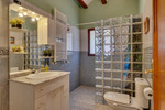 On the main floor, there are two generously sized bedrooms, one with an en-suite bathroom, as well as a family bathroom. On the first floor, you will find two impressive bedrooms, both with access to the glazed, covered roof terrace, currently used as an office. From here, you can enjoy superb views of the surrounding countryside. Both bedrooms, equipped with air conditioning, share a large family bathroom.