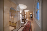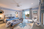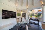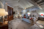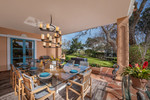 On the upper floor, a welcoming gallery with a sitting area and office space, also with a fireplace, opens onto a large terrace from which magnificent views of the golf course and the sea can be enjoyed. This level also features three guest suites, all with access to private terraces, designed to ensure maximum comfort and privacy.