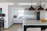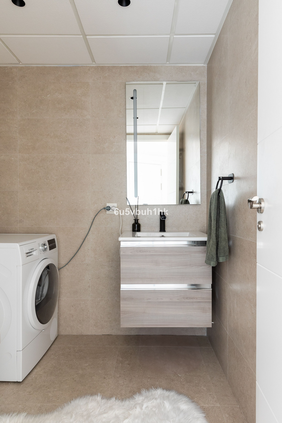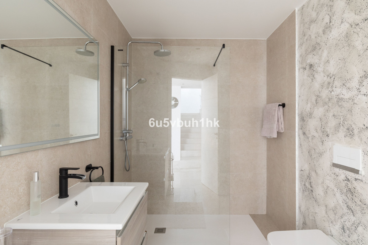 The lower level offers a rare feature for Spanish apartments — a large and welcoming hallway that enhances the feeling of a true home. Here you'll find three bright and spacious bedrooms. The master bedroom has an en-suite shower room and direct access to a private enclosed patio — a versatile space perfect for a sauna, gym, or shaded relaxation area. The other two bedrooms also enjoy sea views and share a modern shower room.