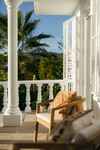 De master bedroom opent direct naar een eigen buiten chill-out gebied met ligstoelen, weelderige groen en een rustige sfeer