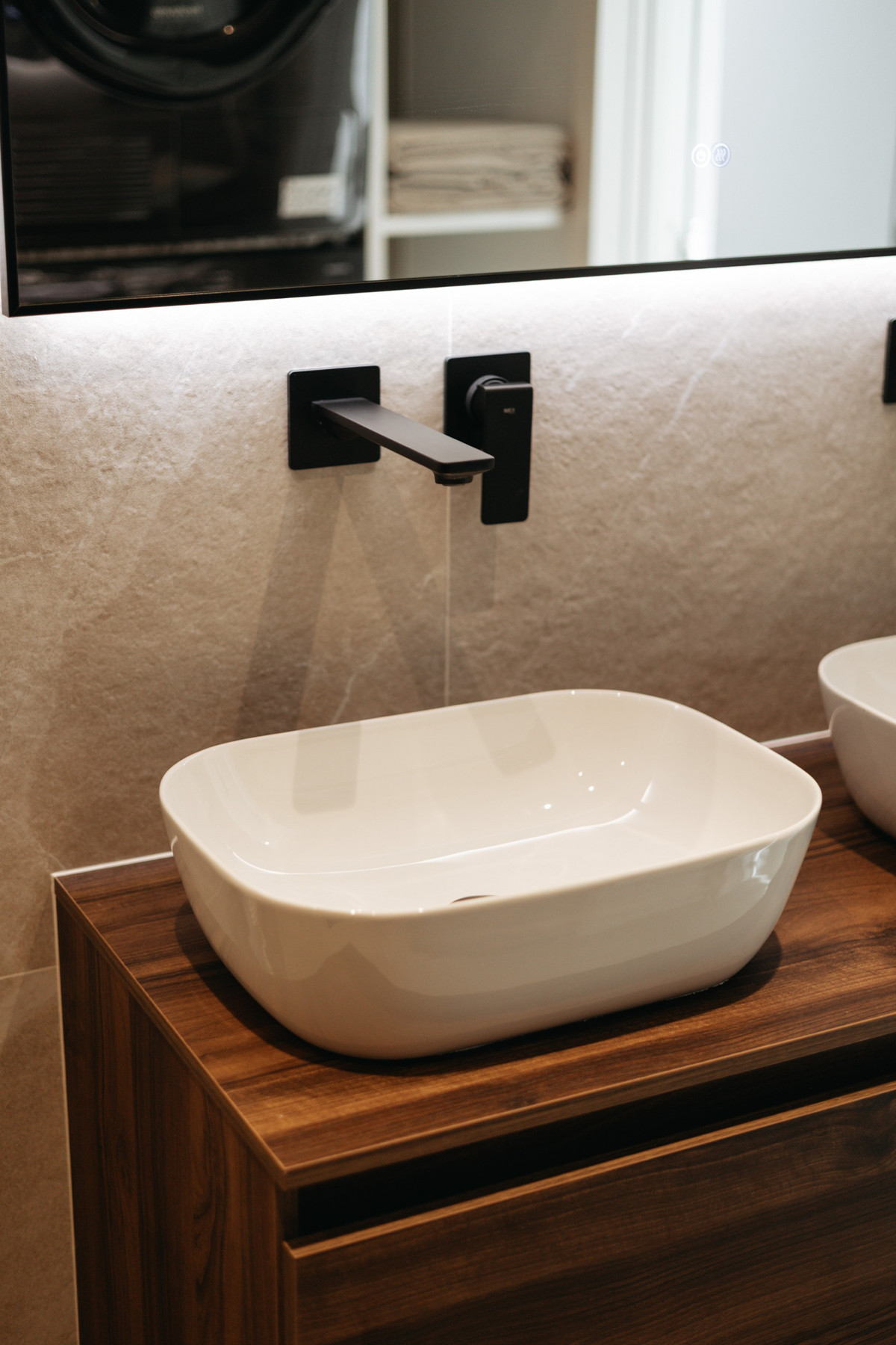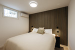 Het lagere niveau biedt twee ruime slaapkamers met tweepersoonsbedden en ingebouwde kasten, evenals een ruime berging. De elegante badkamer beschikt over een luxe regendouchewasmachine en droger.