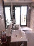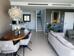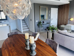 The penthouse is situated directly on the front line of the famous "Campo America" golf course and offers breathtaking panoramic views of the mountains, golf courses and the Mediterranean Sea. It is distributed over 2 floors. On the main floor, the elegant living-dining area opens into a spacious terrace where sunrise become a masterpiece. The open-plan, fully equipped kitchen with Bosch electric appliances is designed for family meals and is complemented by practical utility cabinets. Two additional bedrooms offer comfort and privacy with a stunning view on the golf course and share the guest bathroom.