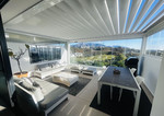 • Pergola with glass curtains and bio-climatic roof operated with remote control