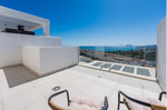 Op de eerste verdieping bevinden zich drie slaapkamers, waaronder een luxe master suite met en-suite badkamer, en twee extra slaapkamers die een moderne badkamer delen. De bovenste verdieping is bestemd voor een vierde slaapkamer met een eigen badkamer. en een inloopkast, evenals toegang tot een spectaculair dakterras – ideaal om gasten te ontvangen of gewoon te genieten van het weidse uitzicht op de kust.