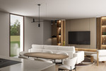 Binnen is de woning uitgerust met hoogwaardige afwerkingen en luxe voorzieningen. De keuken is volledig ingericht met modern meubilair en apparatuur en loopt naadloos over in de leefruimtes die worden gekenmerkt door comfort en verfijning.
