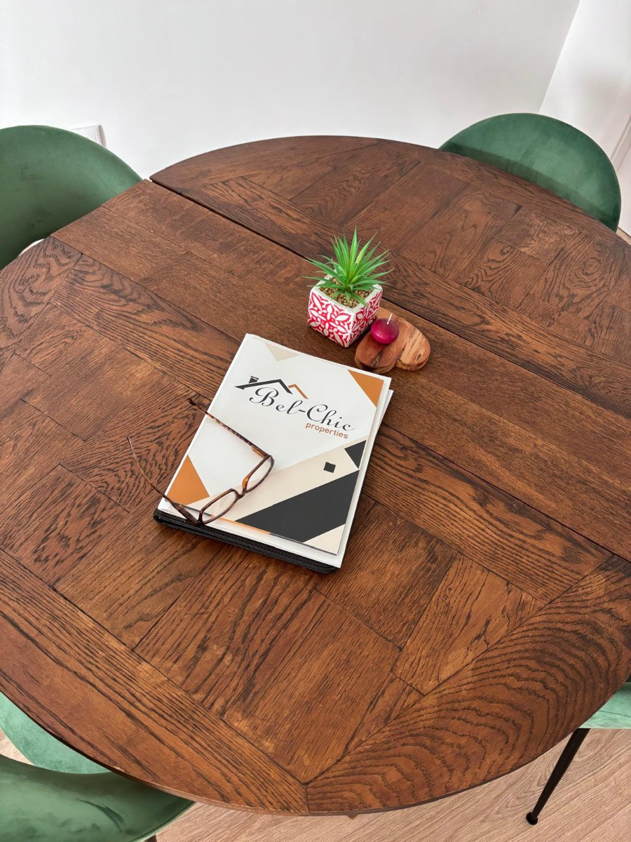 Het hart van de woning wordt gevormd door een ruime en lichte woonkamer die uitnodigt tot ontspanning. De woonkamer loopt naadloos over in de open keuken, volledig uitgerust met witgoed, waardoor een gezellige en uitnodigende ruimte ontstaat, ideaal voor het ontvangen van familie en vrienden. Grote ramen laten de hele dag natuurlijk zonlicht binnenstromen, wat bijdraagt aan de warme en uitnodigende sfeer.