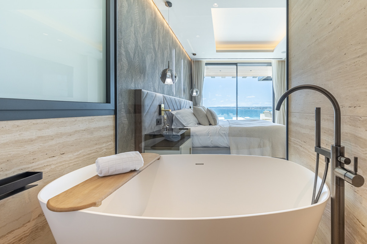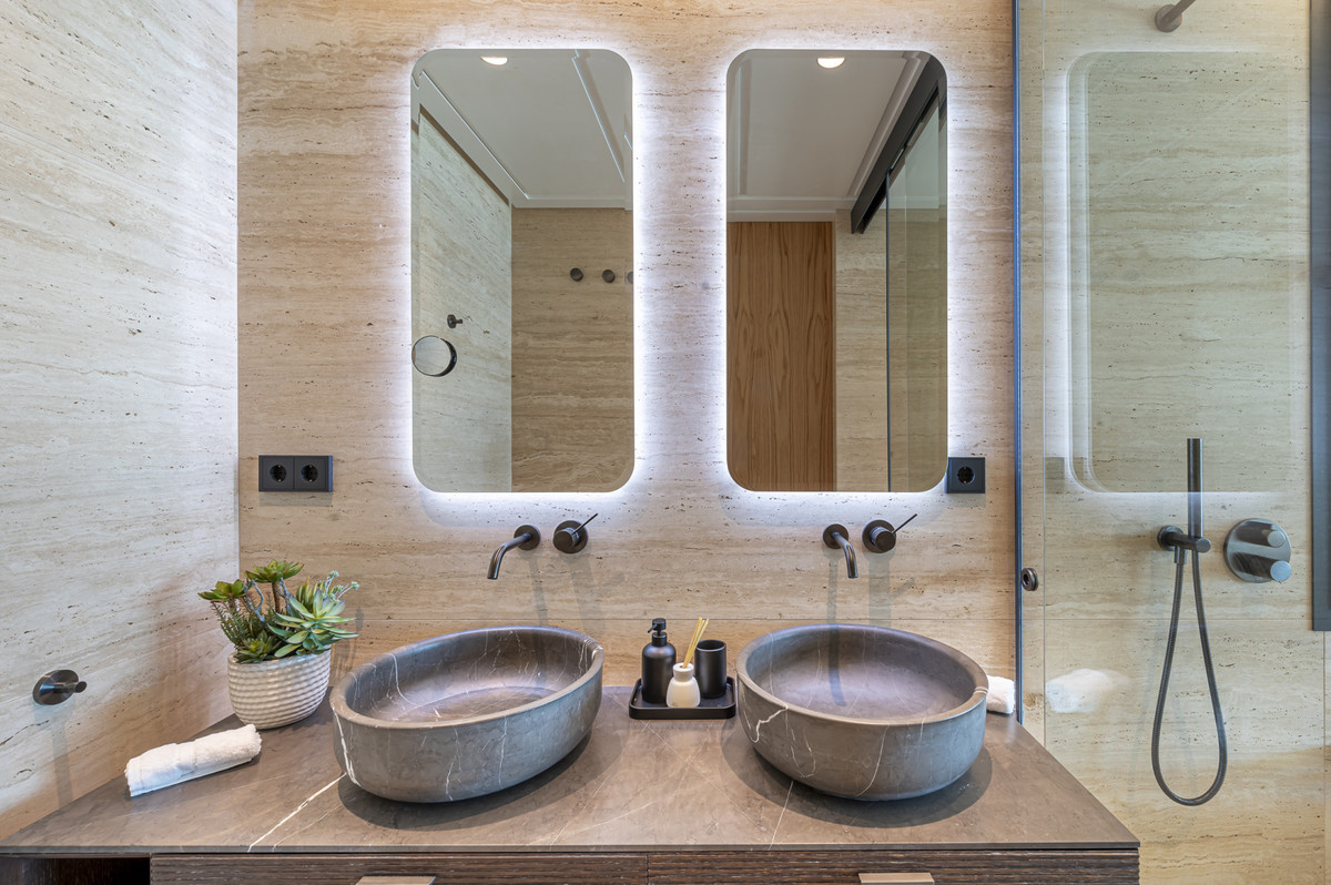 Het uitgestrekte terras van 120m2 is een opvallende eigenschap en biedt zowel overdekte als onbedekte gebieden om te genieten van het mediterrane klimaat. Bewoners kunnen genieten van een privé zwembad, een jacuzzi en een sauna, allemaal aangevuld met toegang tot een gemeenschappelijk binnenzwembad en een volledig uitgeruste fitnessruimte. De gated community biedt 24-uurs beveiliging met bewakingscamera’s en video-ingangssystemen, wat zorgt voor gemoedsrust. Moderne gemakken zoals elektrische jaloezieën, glasvezel internet, satelliet-tv en inbouwkasten verbeteren de woonervaring.